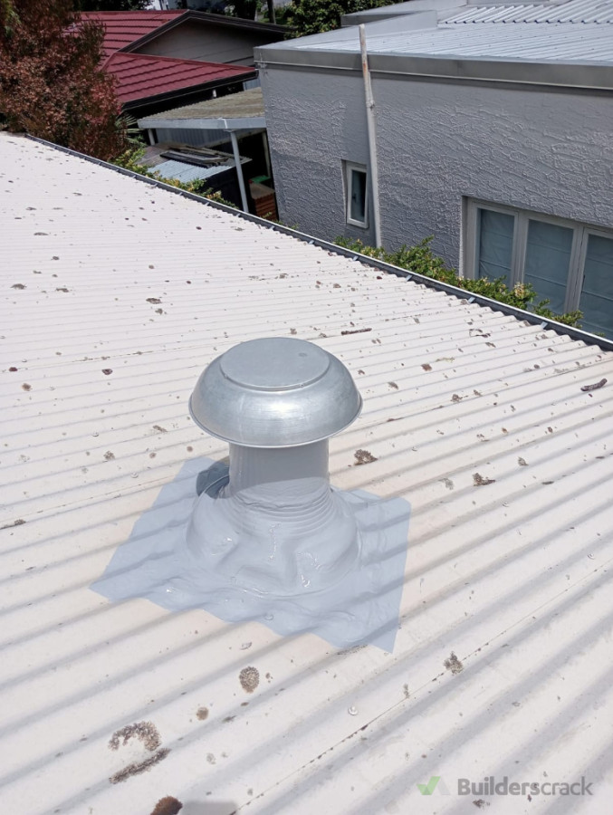 Professional waterproofing of roof vent penetration, providing a durable, watertight seal designed to prevent future leaks and extend roof lifespan.