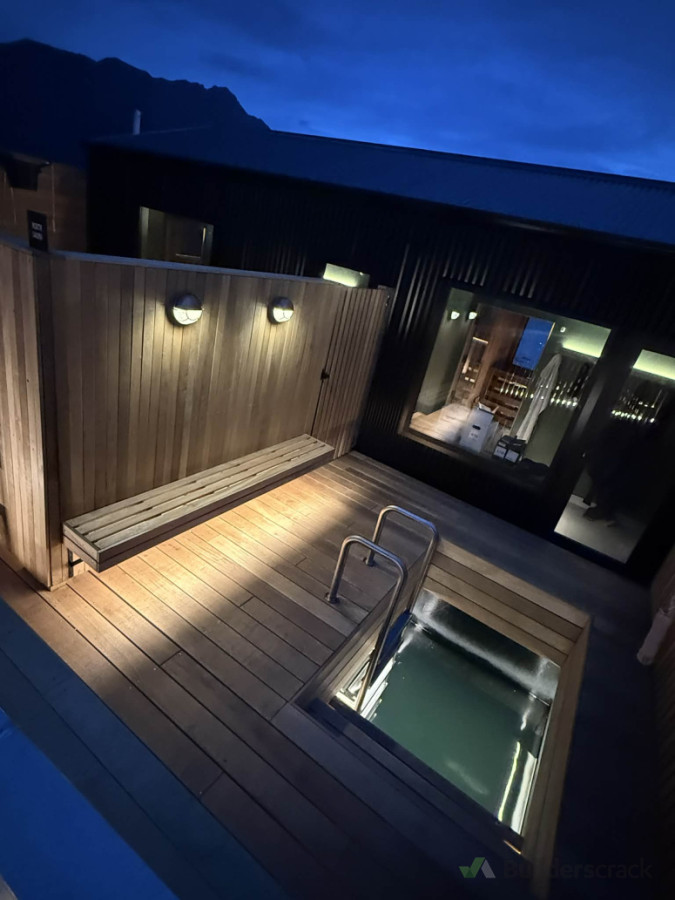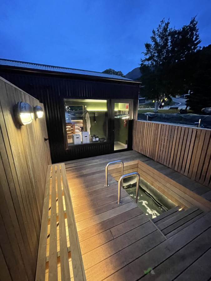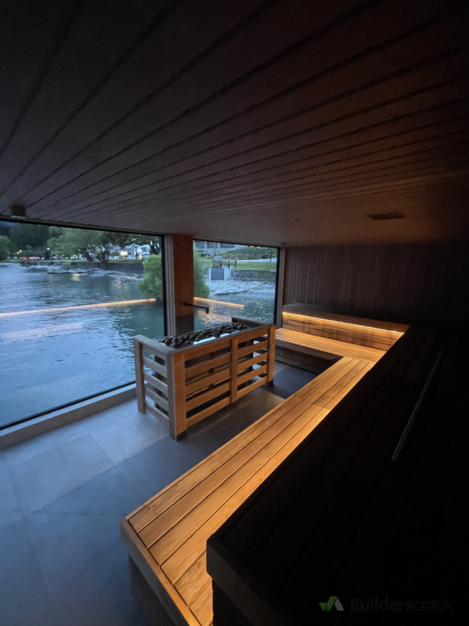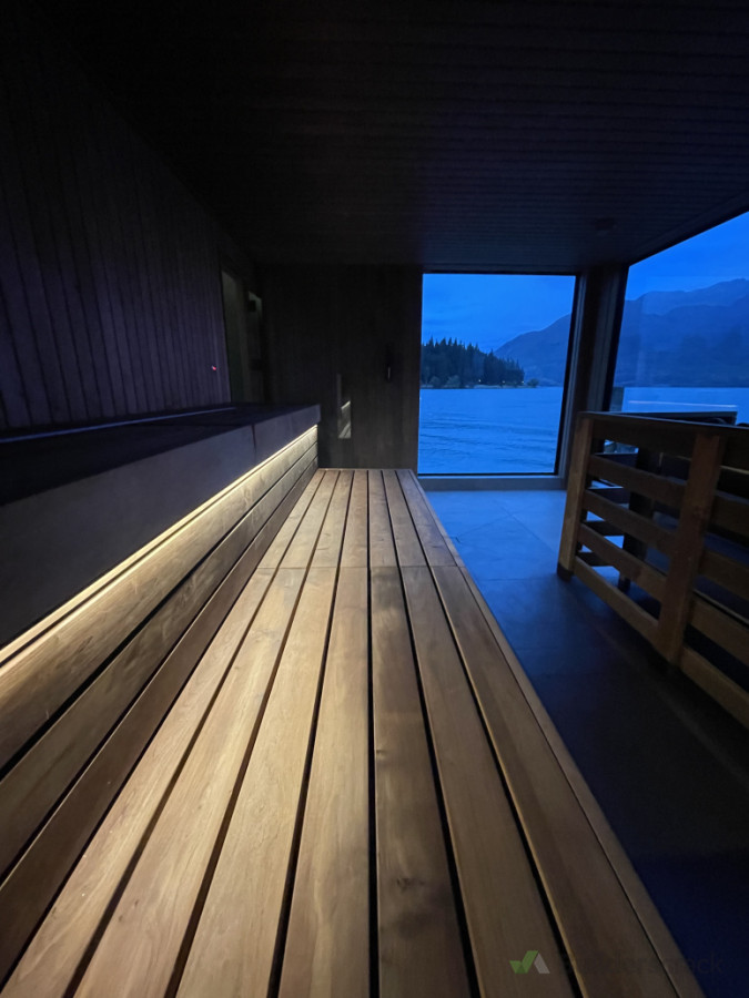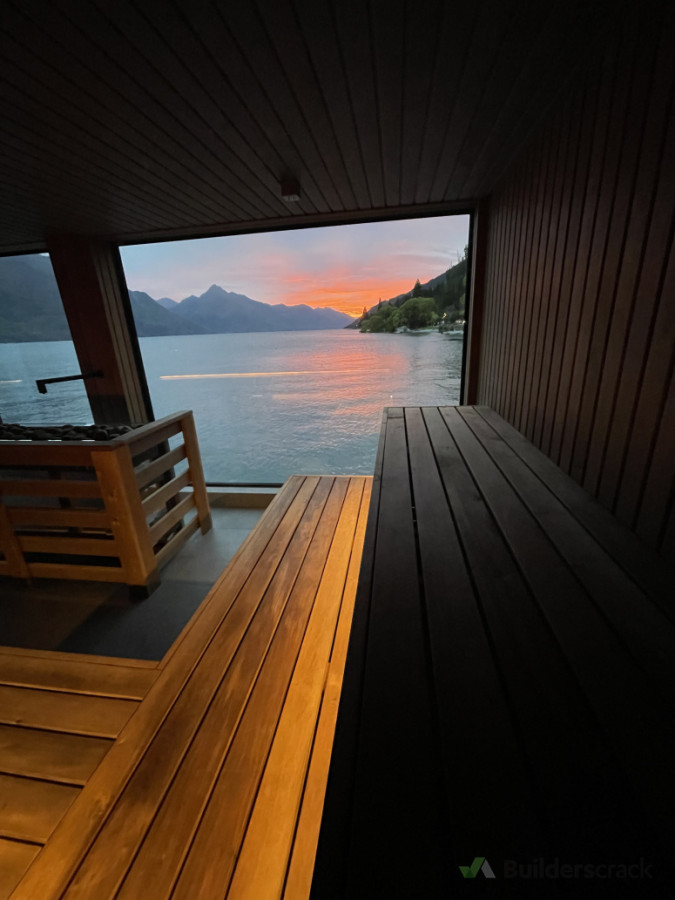 Pre-wired and fitted of floating sauna structure on Queenstown Lakefront.