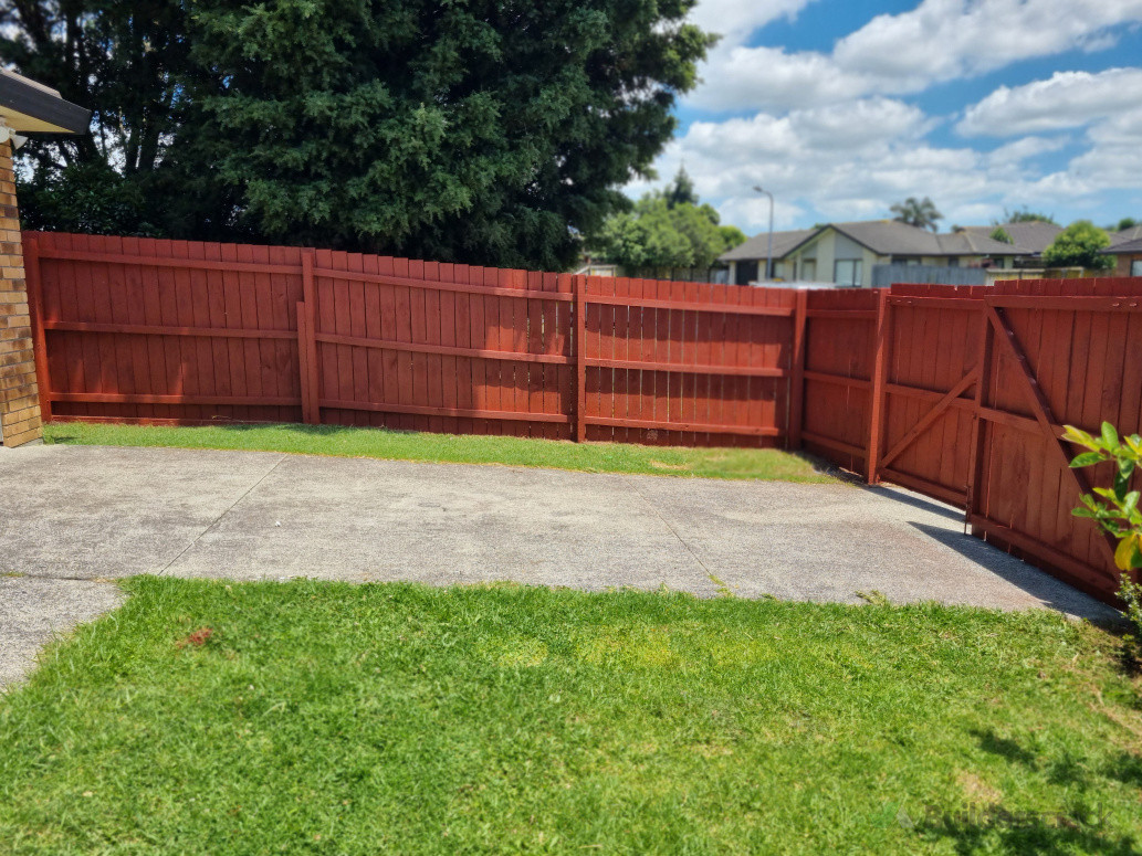 Once fully dry, two coats of specialised self-priming fence paint were applied using an airless spray system to ensure even coverage and a durable finish.