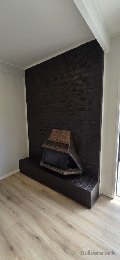 Unused fireplace boxed off for TV to sit on. Prepped for client to do final painting.