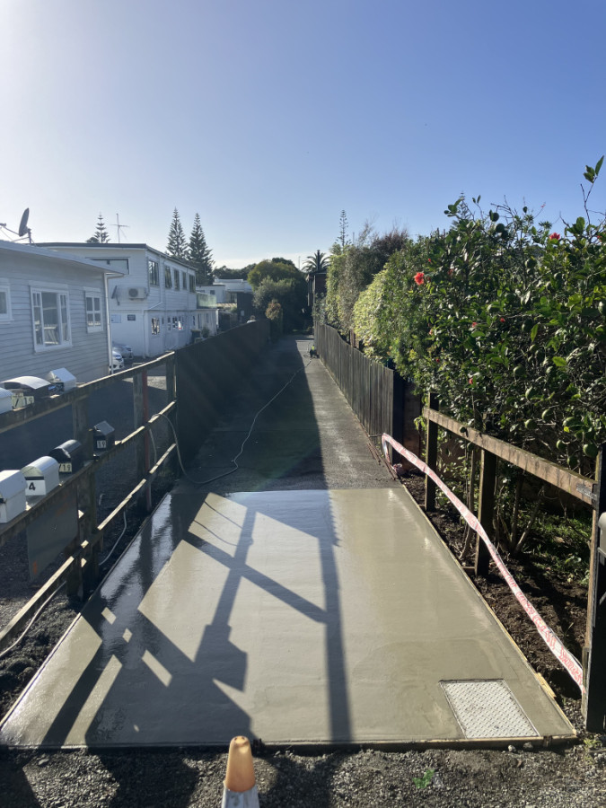 Replacement of the driveway section together with installation of future proofing water pipes under the slab. Location Orewa