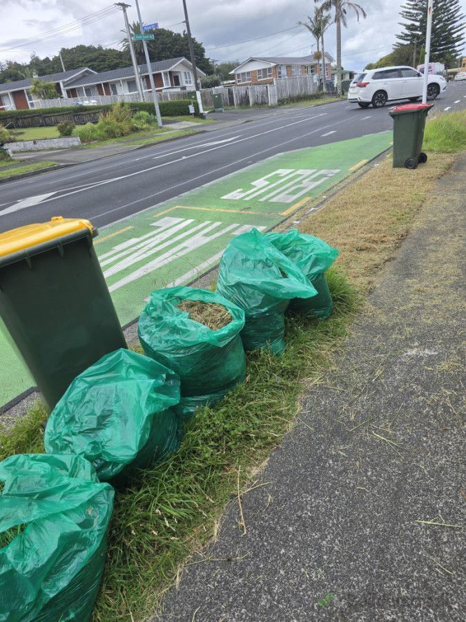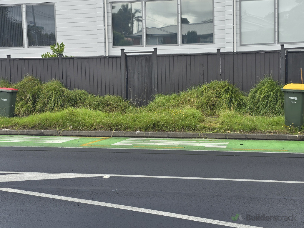 The berm outside the front gate and facing the road was mowed, and all green waste was removed.
