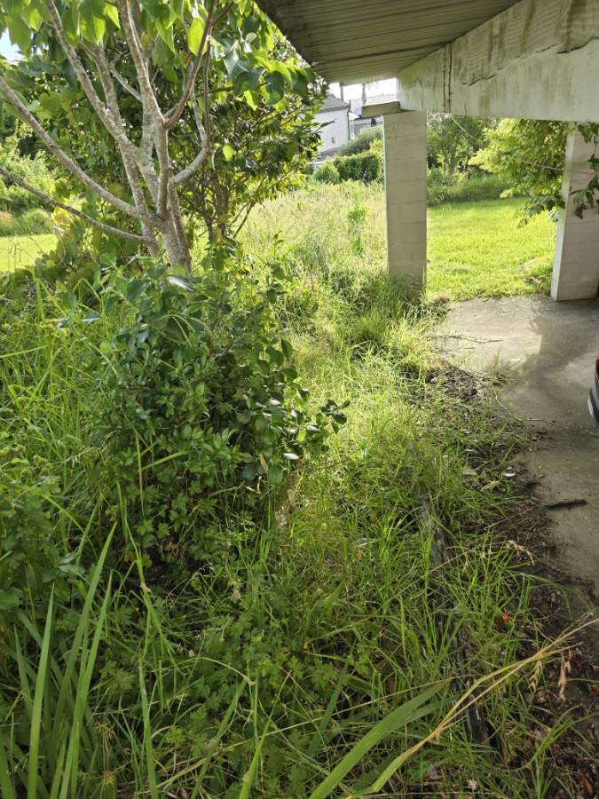 Removal of weeds, disposal of green waste, and application of weed spray.