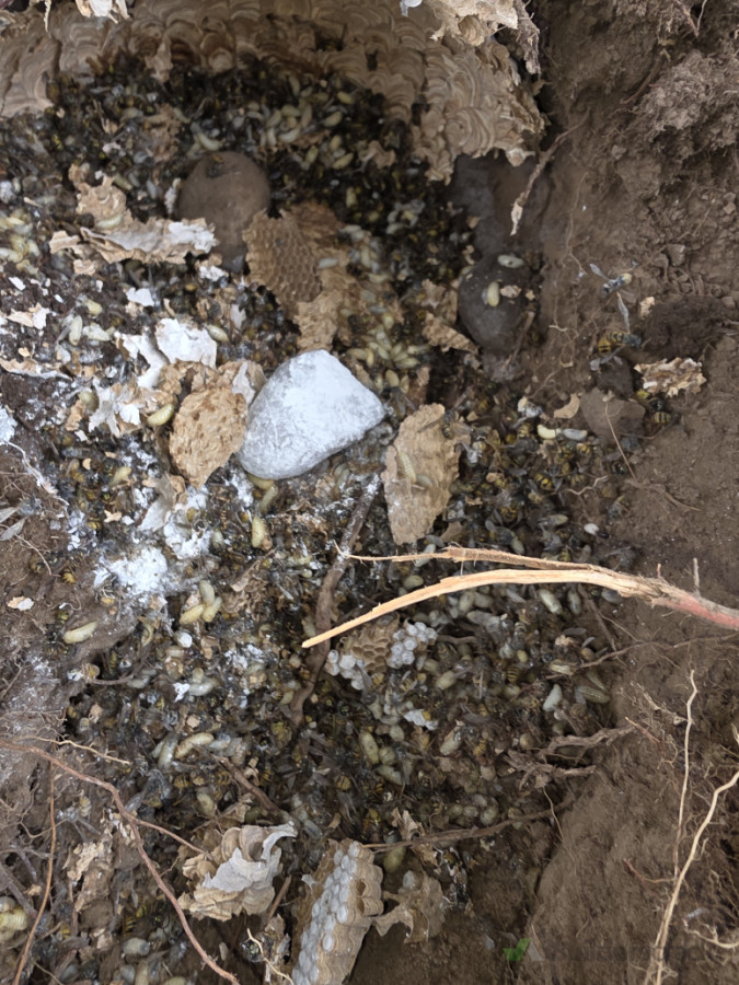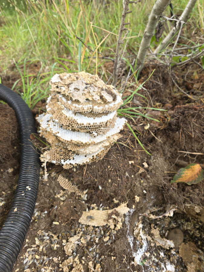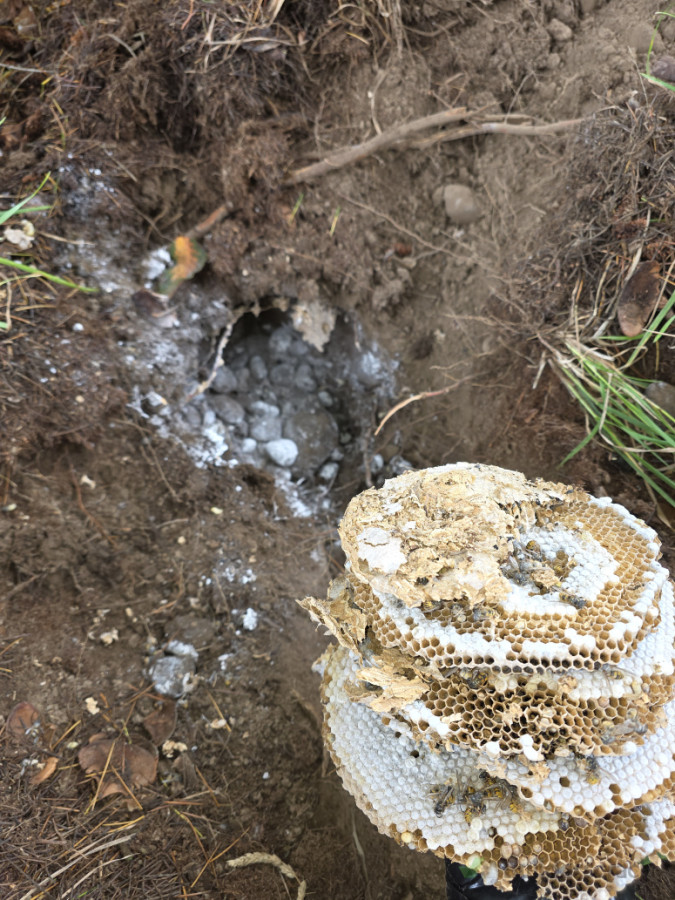 The client contacted All Zone 360 Pest Control, and we carried out a full inspection of the property. During the inspection we located an active underground wasp nest hidden beneath the ground in the backyard.