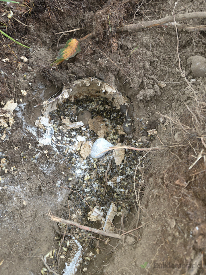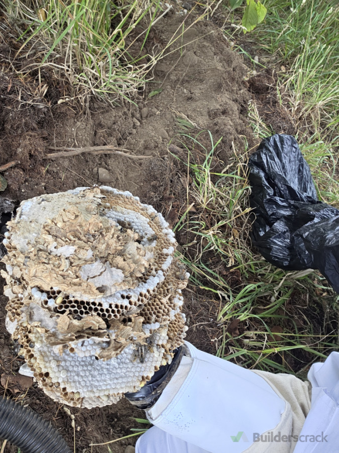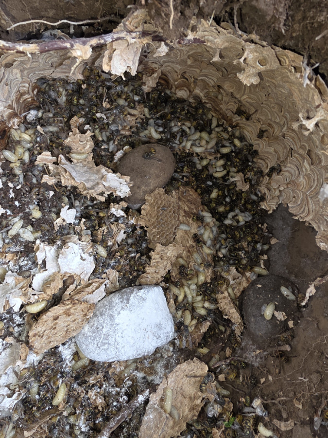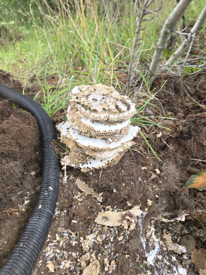 A second inspection was completed to confirm the nest was fully inactive. Once there was no remaining wasp activity, we then dug out and removed the nest to prevent future problems.