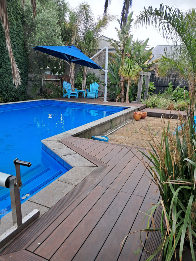 We reskinned an existing kwila deck with luxurious Bamboo decking, extending the deck platform out to create an additional seating area over the concrete pad where a spa once stood