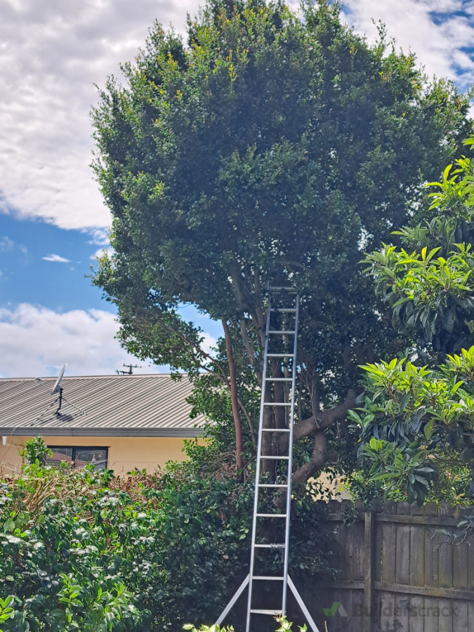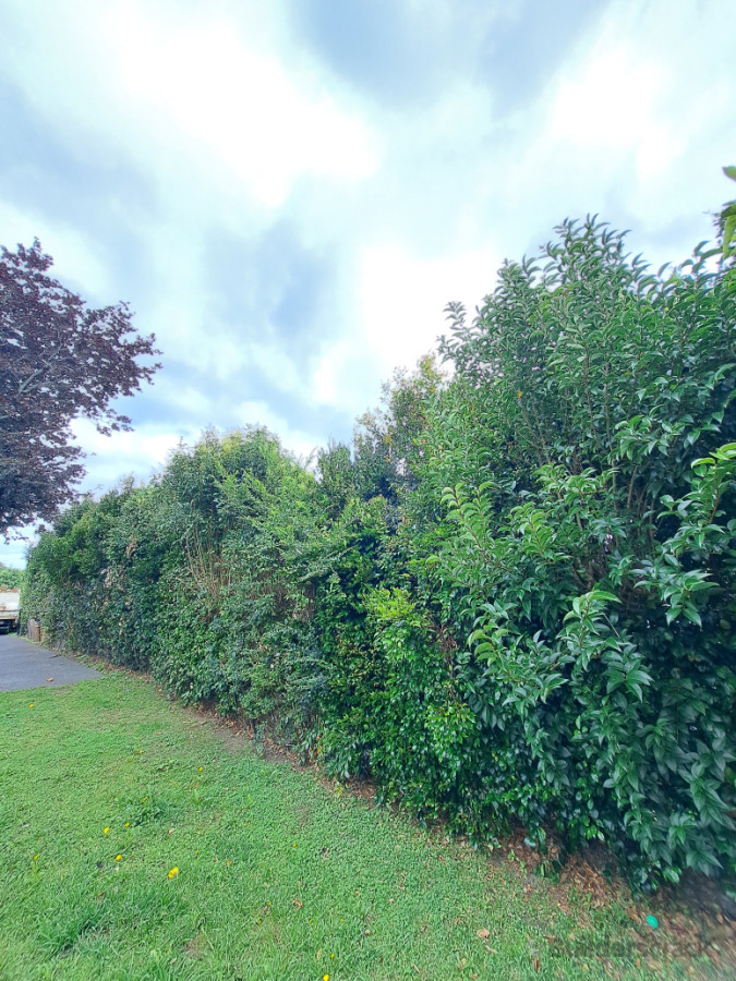 Cutting down hedge over 20 meters long top tree and cleaning section.