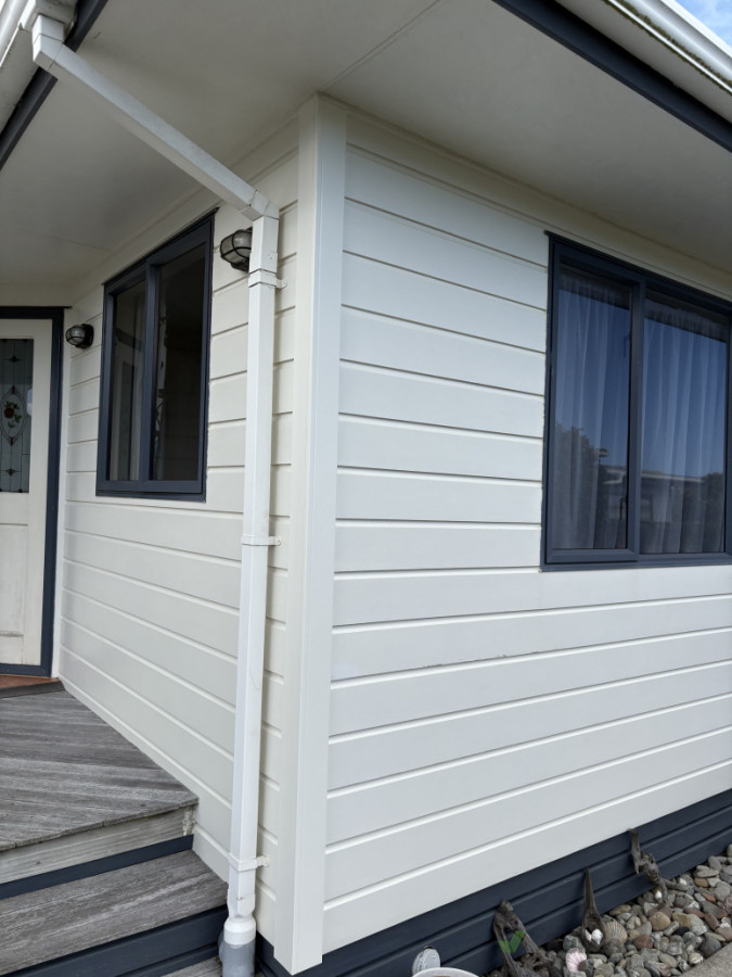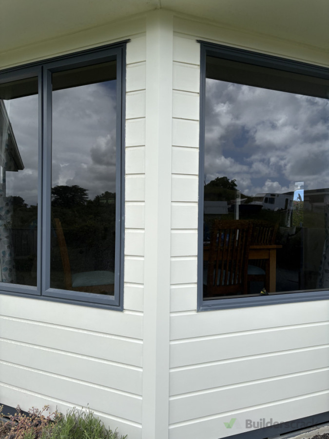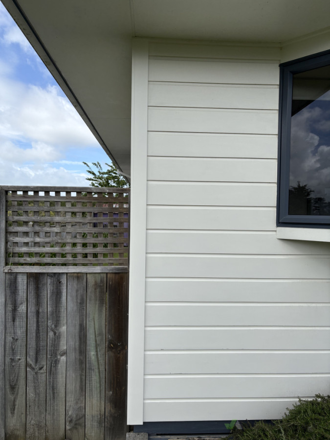 Addition of new box corners on all external corners of home. Existing external corners were failing and these box corners will ensure moisture stays out and the cladding will last longer