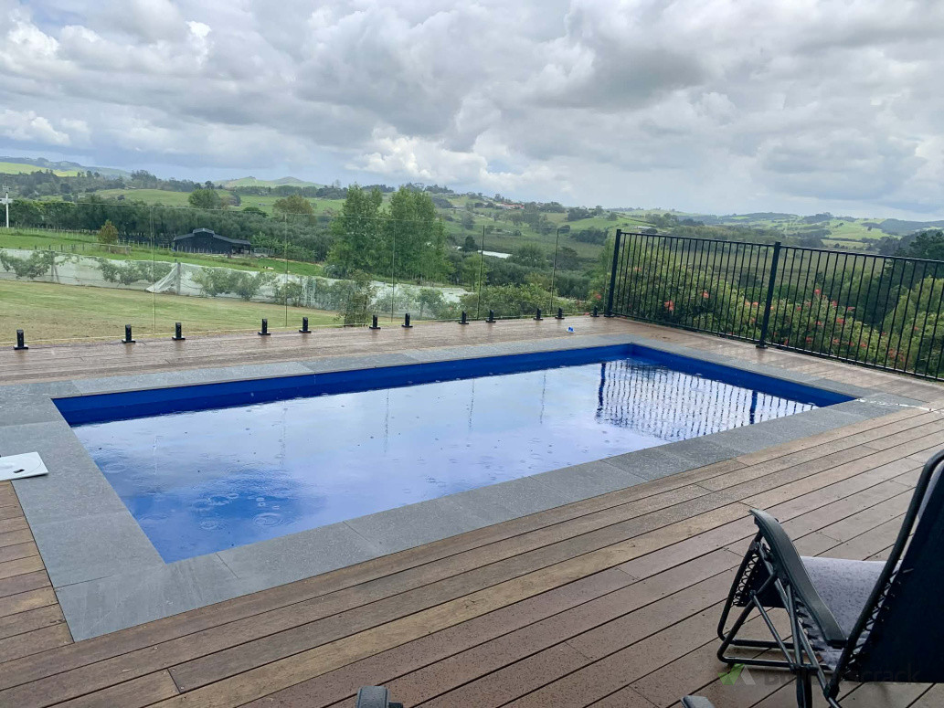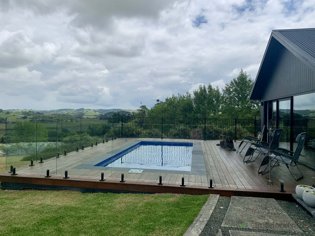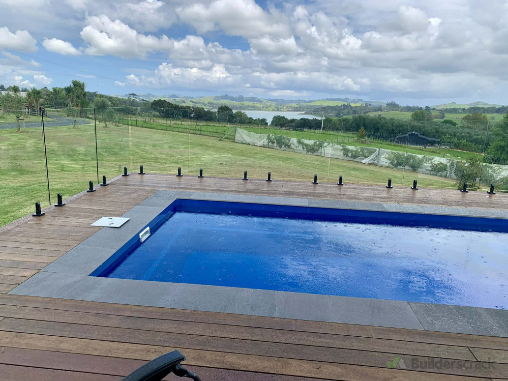clients had installed a new pool, we had to extend on to the existing deck around the pool allowing for the glass blastrades to finish of a sleek look, looking over the kaipara harbour