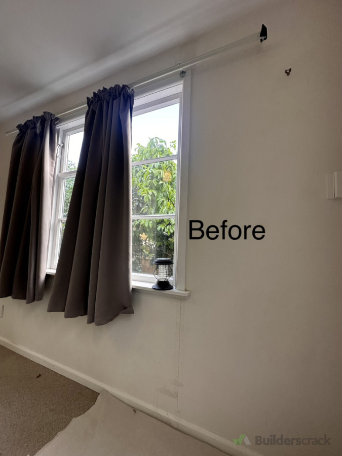 Making good crack damage under window with paint.