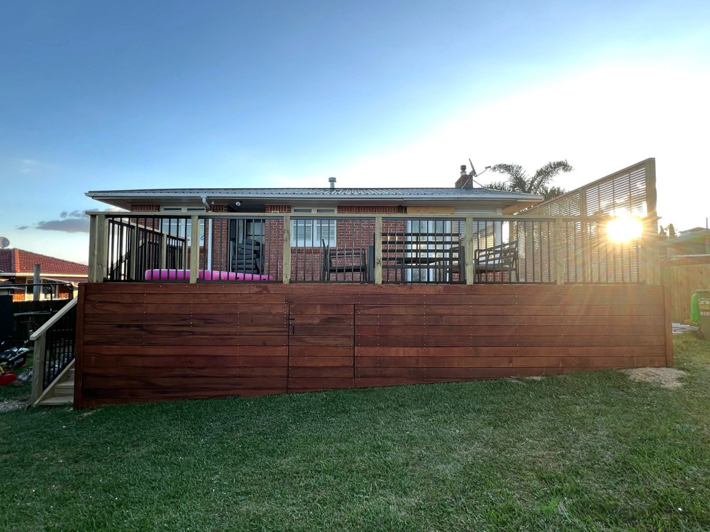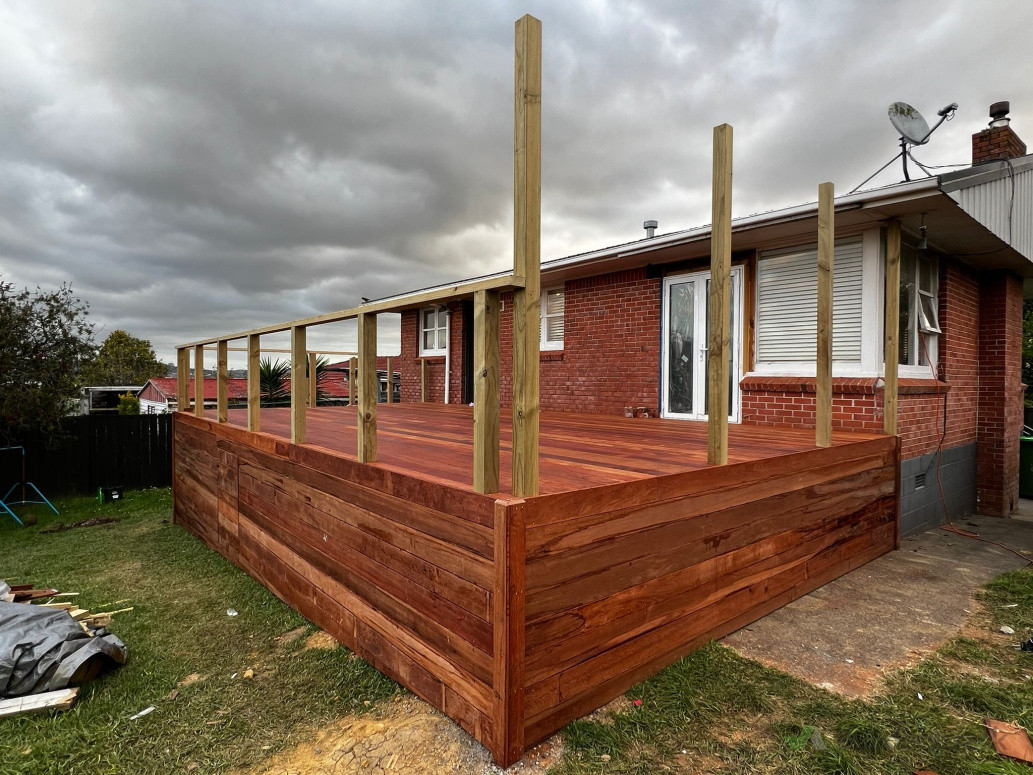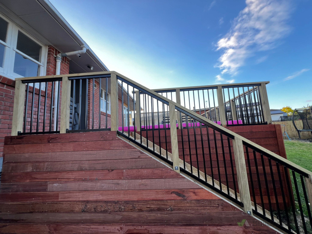 Our clients wanted an extended Kwila deck over their existing concrete patio to bring more space to their outdoor living and to connect the garden with new stairs