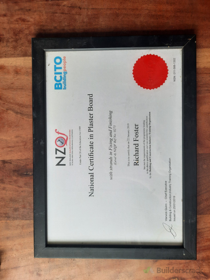 *National Certificate in Plaster Board Fixing and Finishing *New Zealand Certificate in Painting and Decorating