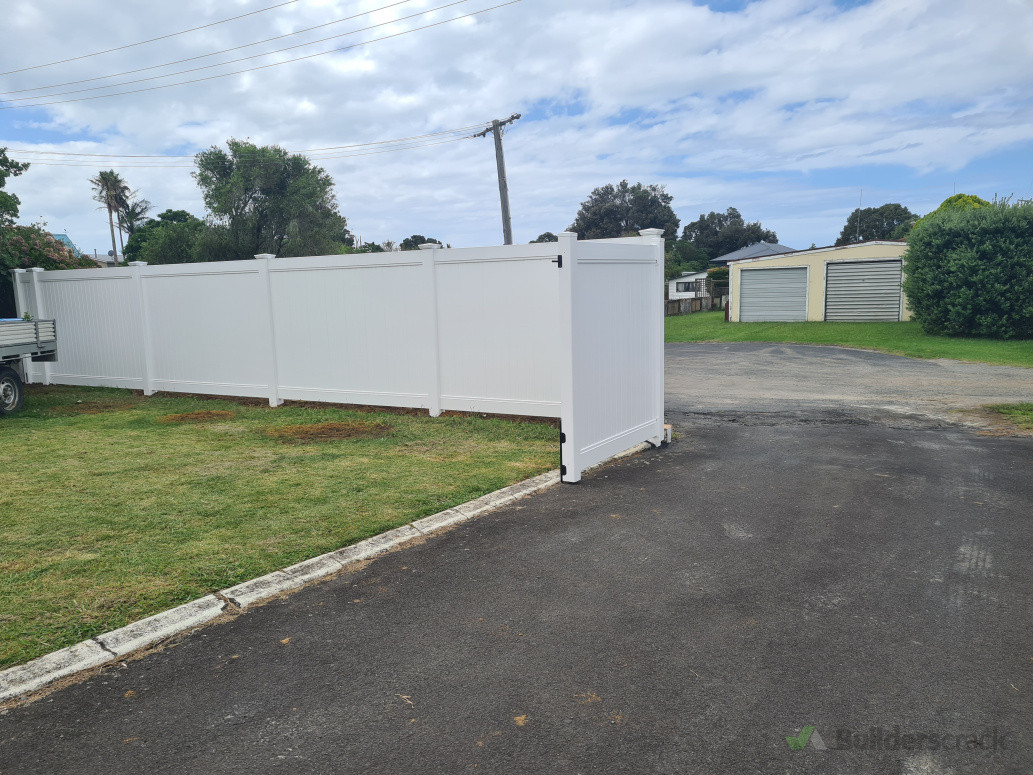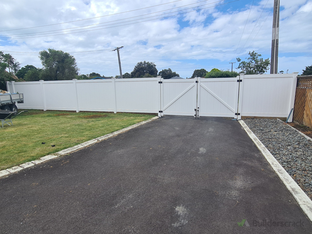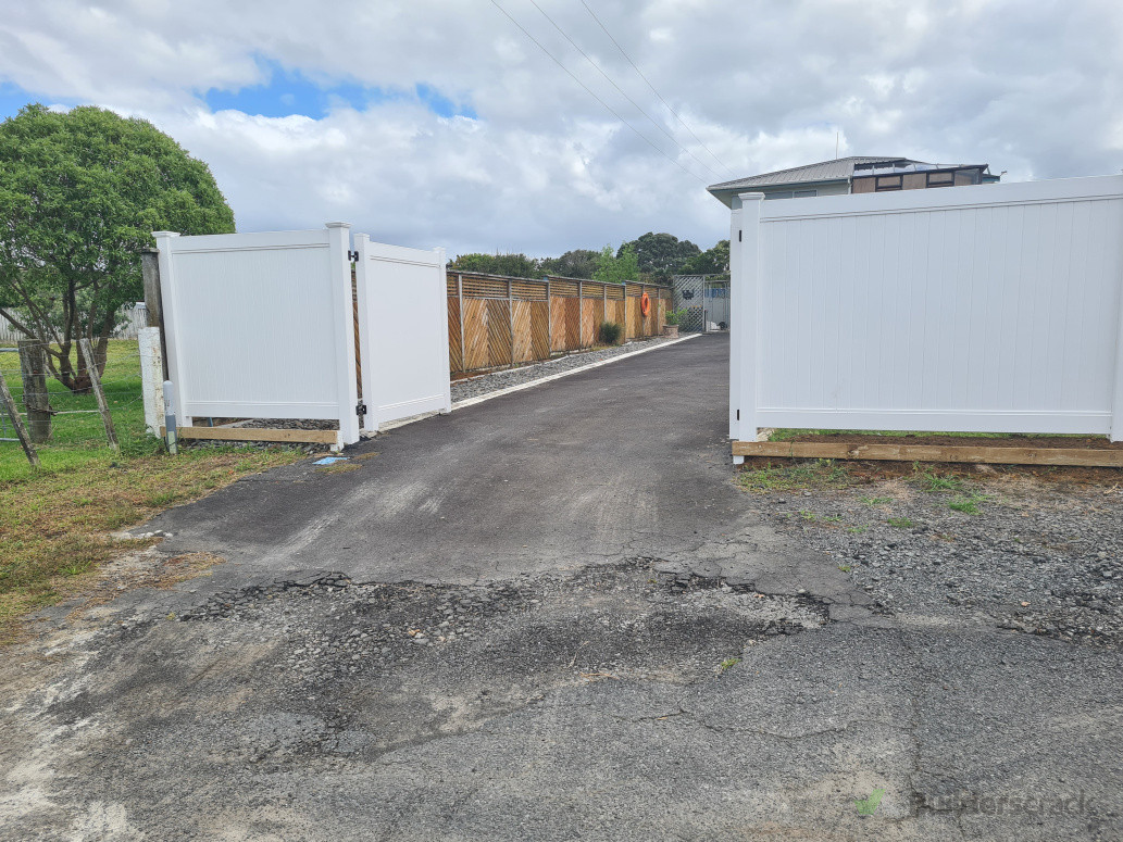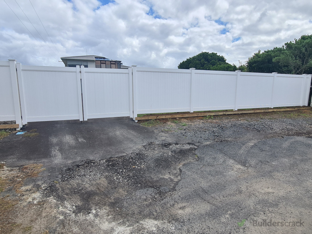 Removal of old fence and gates, installation of new PVC Fence and Driveway gates