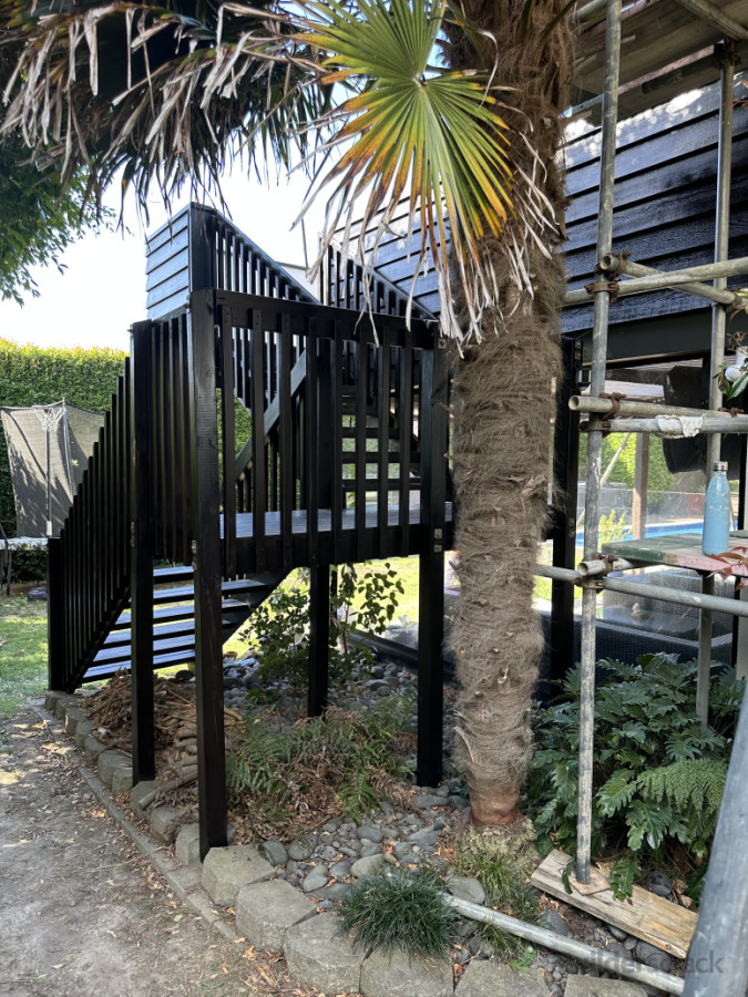 Waterblasting and staining exterior