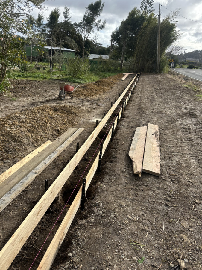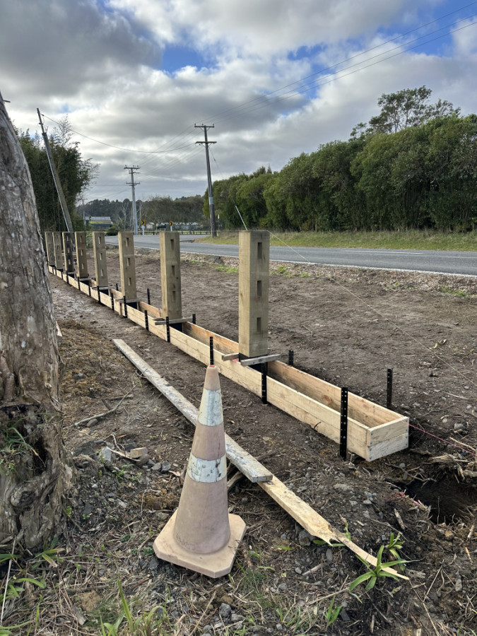 Premium 1.2m slotted post and rail fence completed in Waimakau. We supplied and installed the full fence line, applying Bituproof to the in-ground sections of each post to help protect against moisture and extend post life. For long-term stability, every post was set in a 300 x 300 reinforced concrete plinth with rebar for added strength.