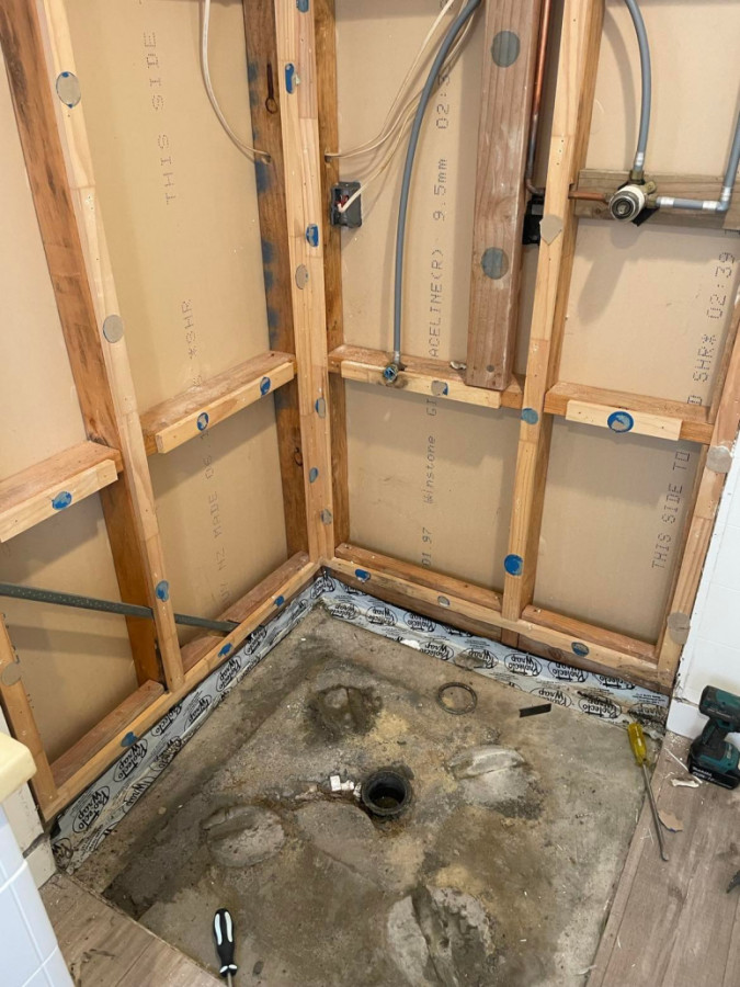 Shower had a crack in the base, this involved removing the shower and replacing the gib to install a brand new shower
