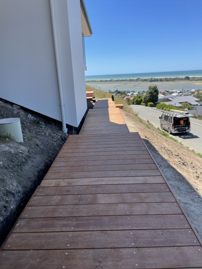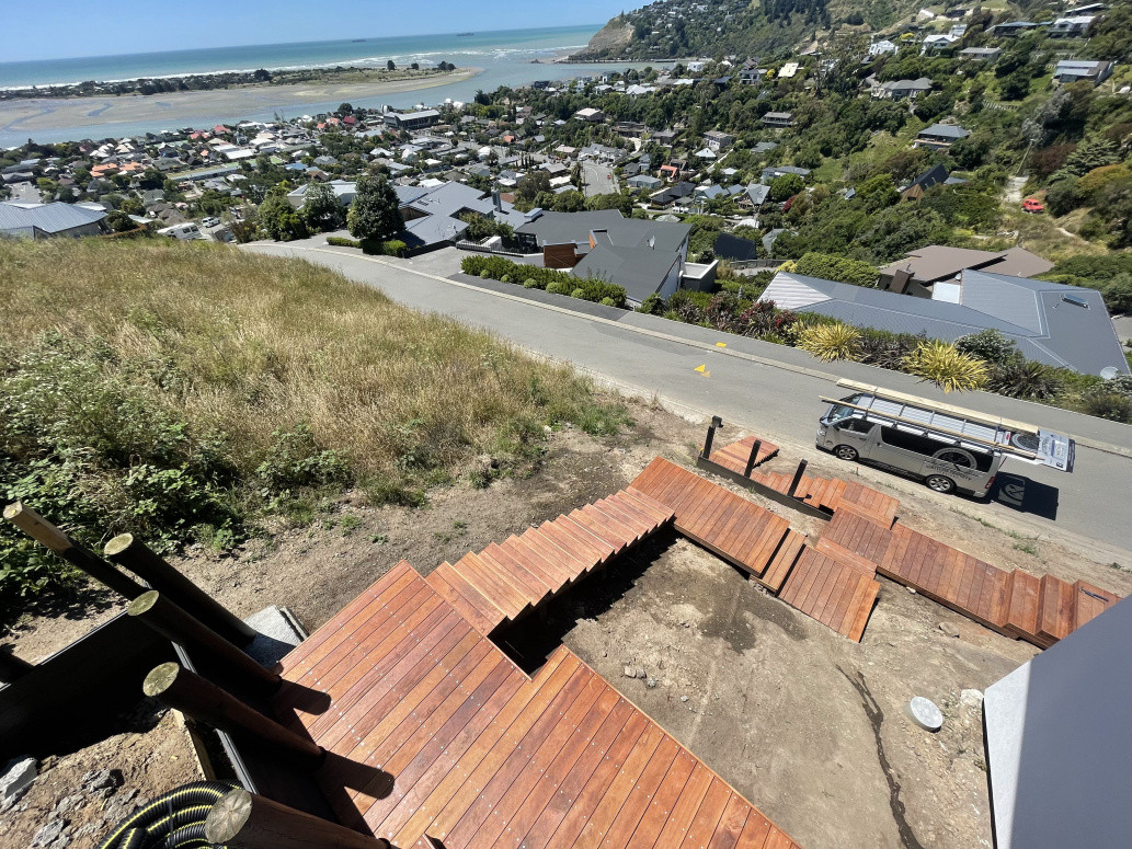 Challenging hill site Kwila steps and landings in Redcliffs 65 steps total linking top entrance road to bottom access road