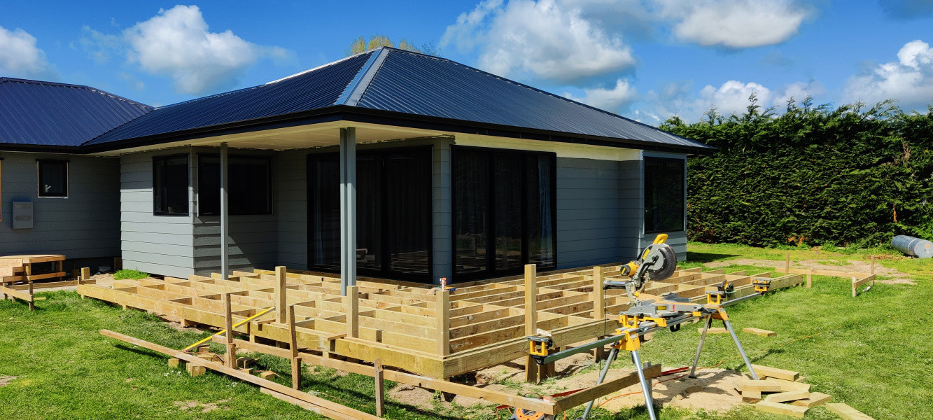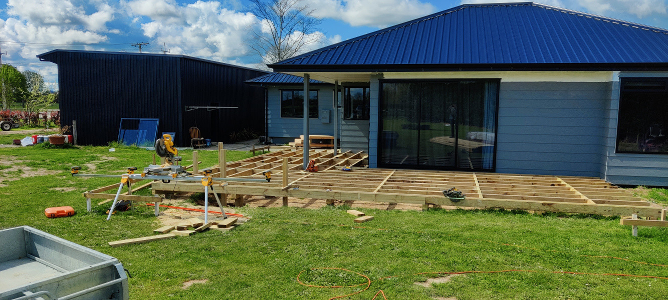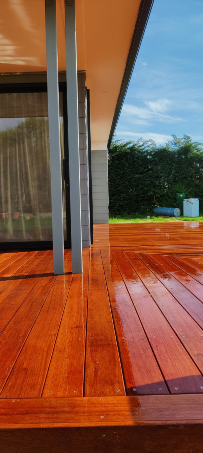 92m² Kwila deck, free standing with wrap around corner seat