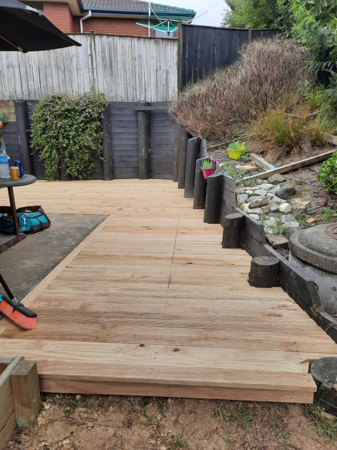 Build a deck to extend from current cement ground level. 26m2