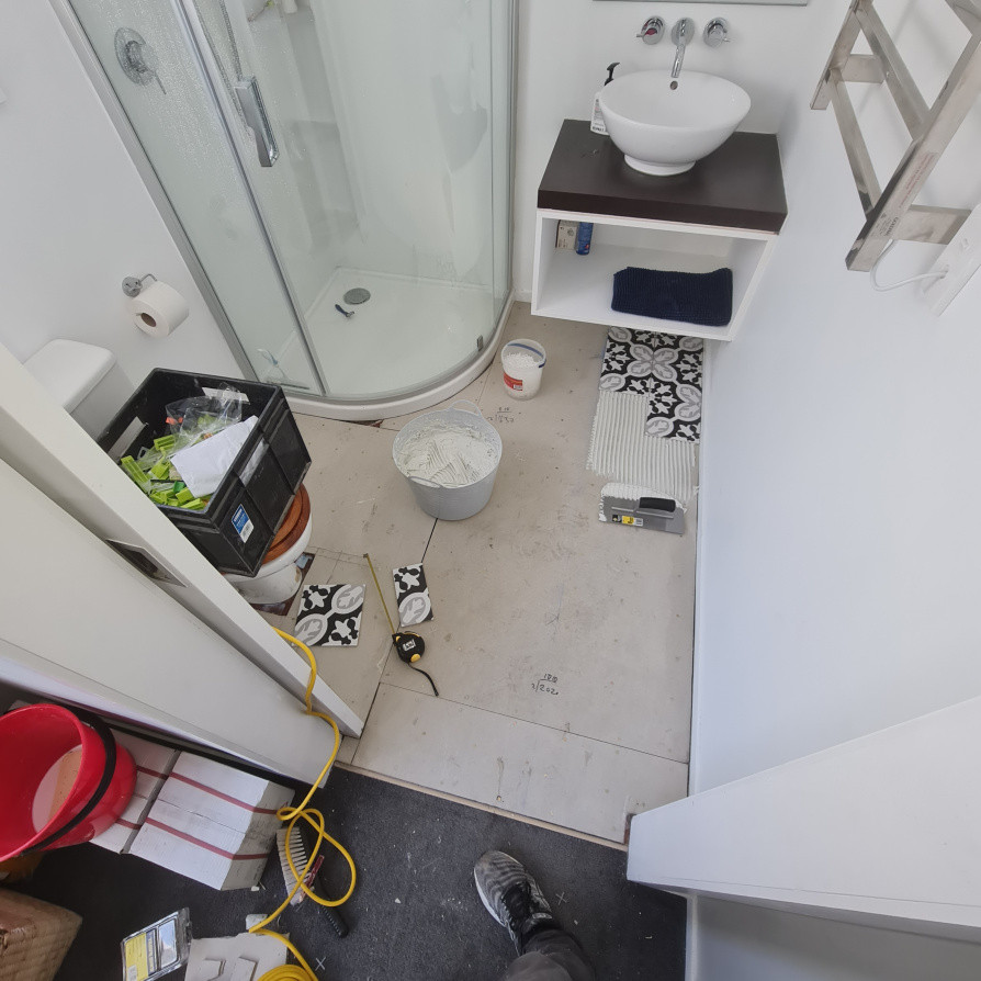 Install tile underlay and lay 200x200 patterned tiles