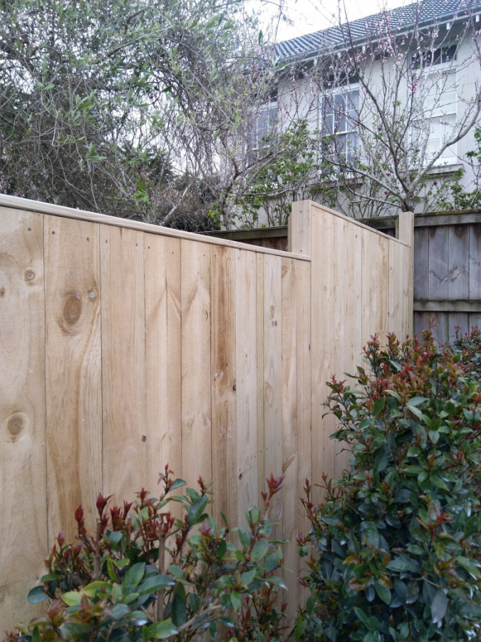 A mitered capping detail on a standard rough sawn paling fence really improves the aesthetic of the fence for only a fractional cost of the entire fence!