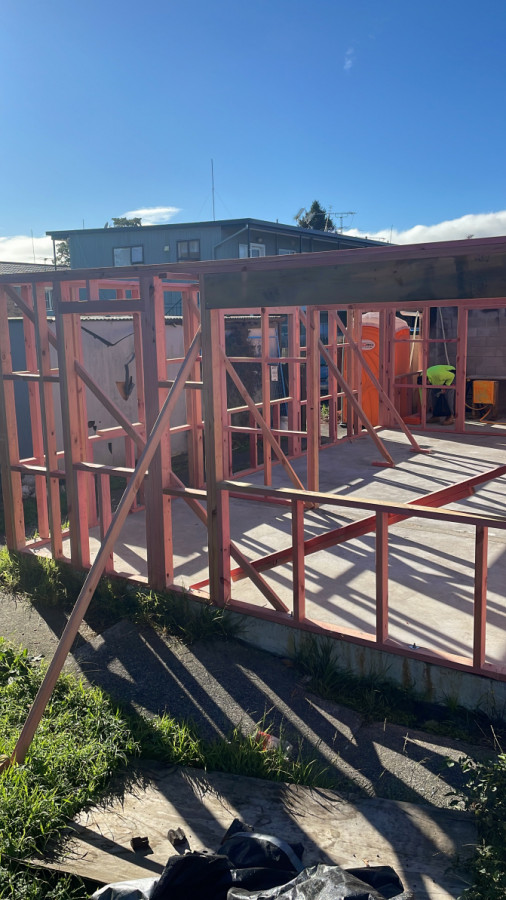 Build own frames on site using plans and stood them up, we also installed steel trusses and build timber gable ends for outriggers. project is on hold now due to council changing plans for existing block firewall because it does not comply with building code as a firewall.