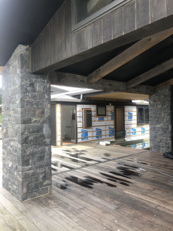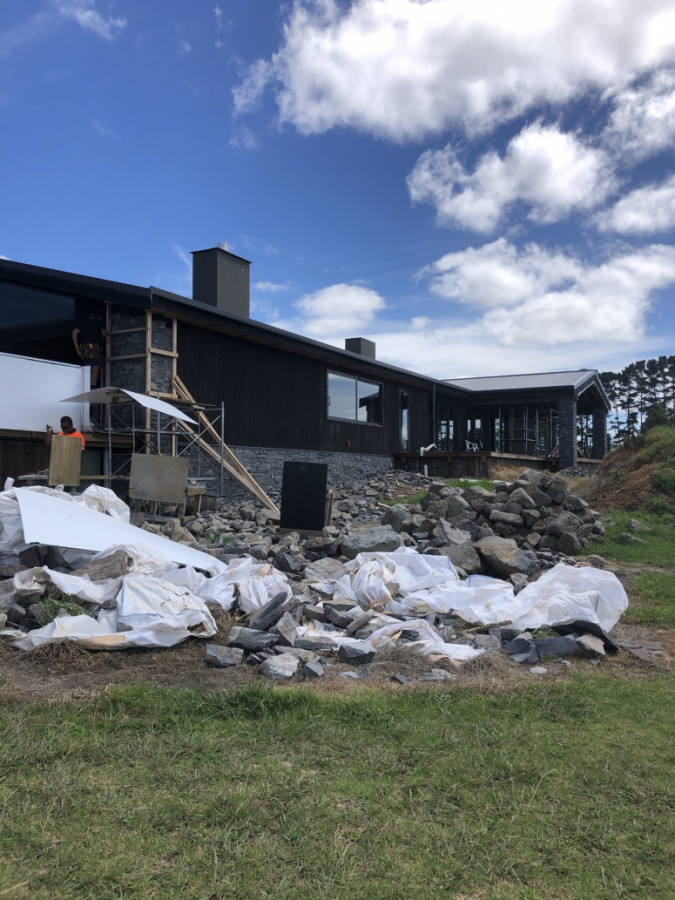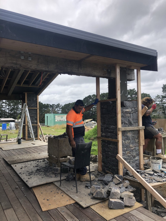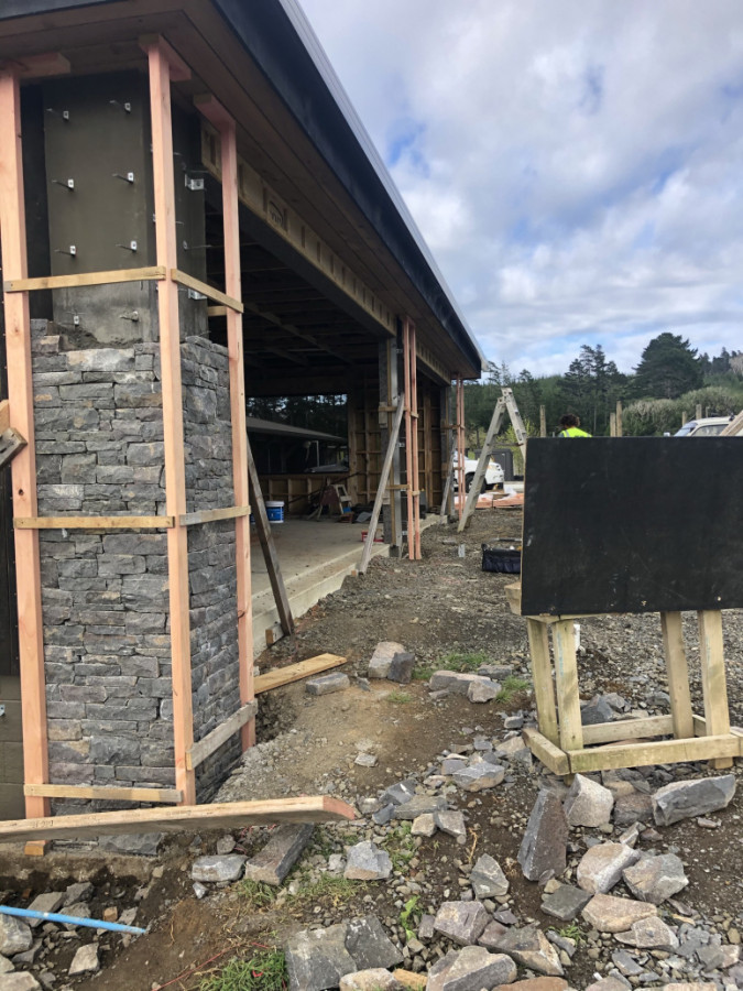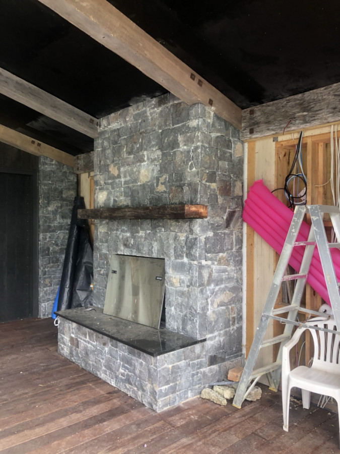 Install stone caddling, water proofing, all stone was hand crafted and chipped.