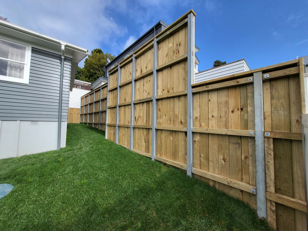 I had to level the site between the existing house and the new build, had some 3m high steel galved posts fabricated, then build the wall. Then did a lawn prep and lay readylawn.