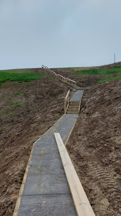 I was requested to construct a public walkway around a new subdivision, this included several lots of stairs which instead of using gravel on the steps I used concrete. This option will be better maintenance wise long term.