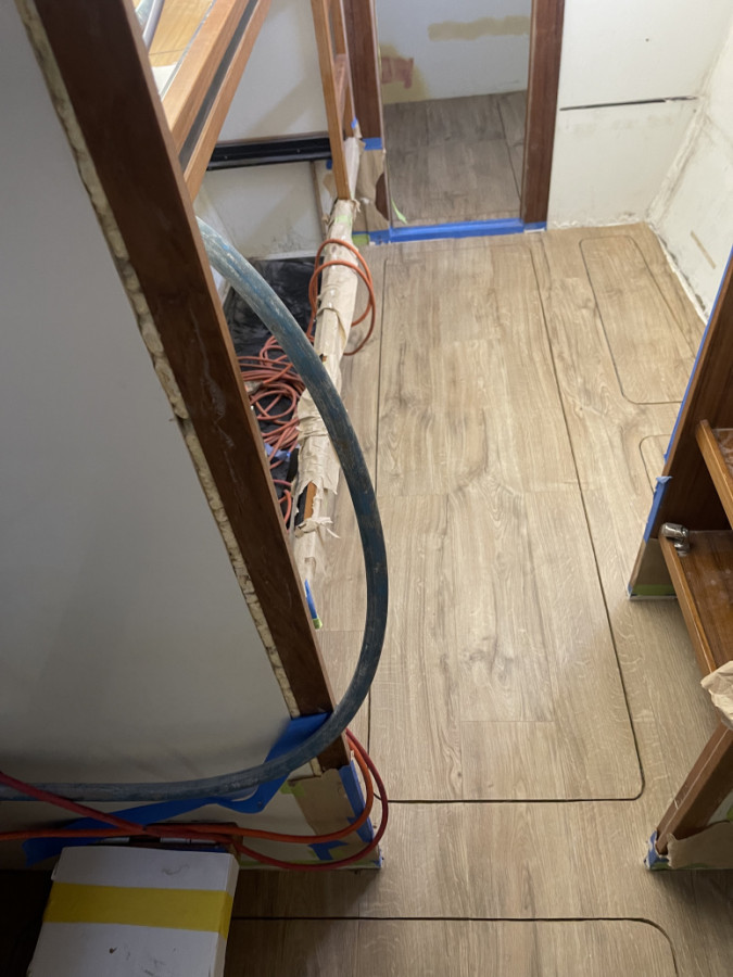 Luxury Vinyl Planks fitted to dual hull vessel, saloon, wet areas and cabins with hatch access detailing.
