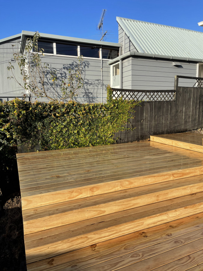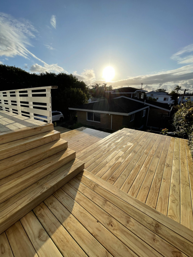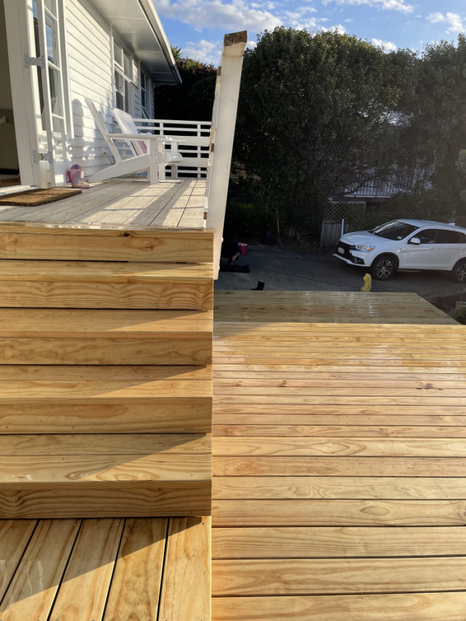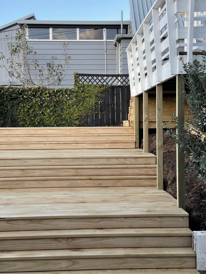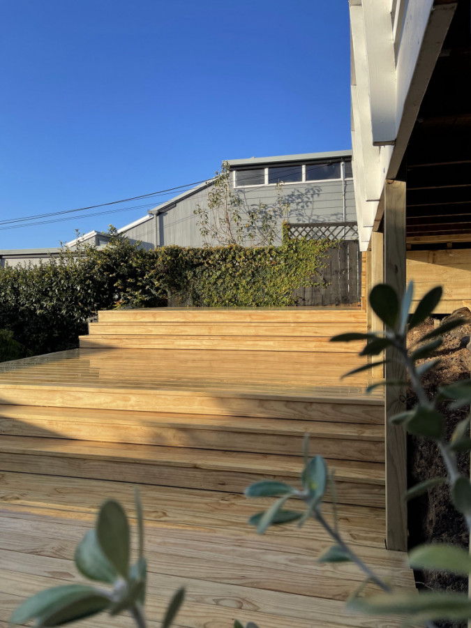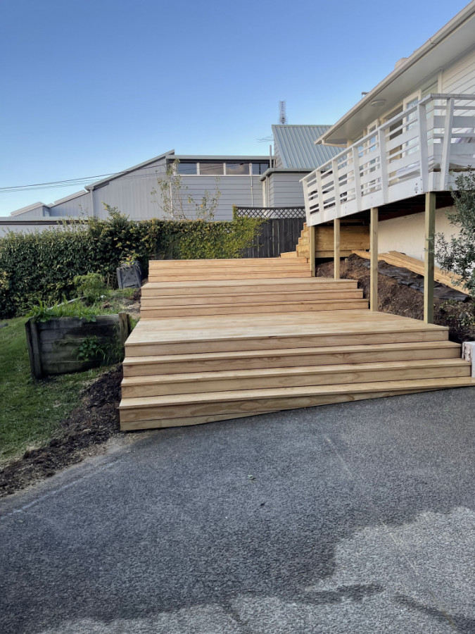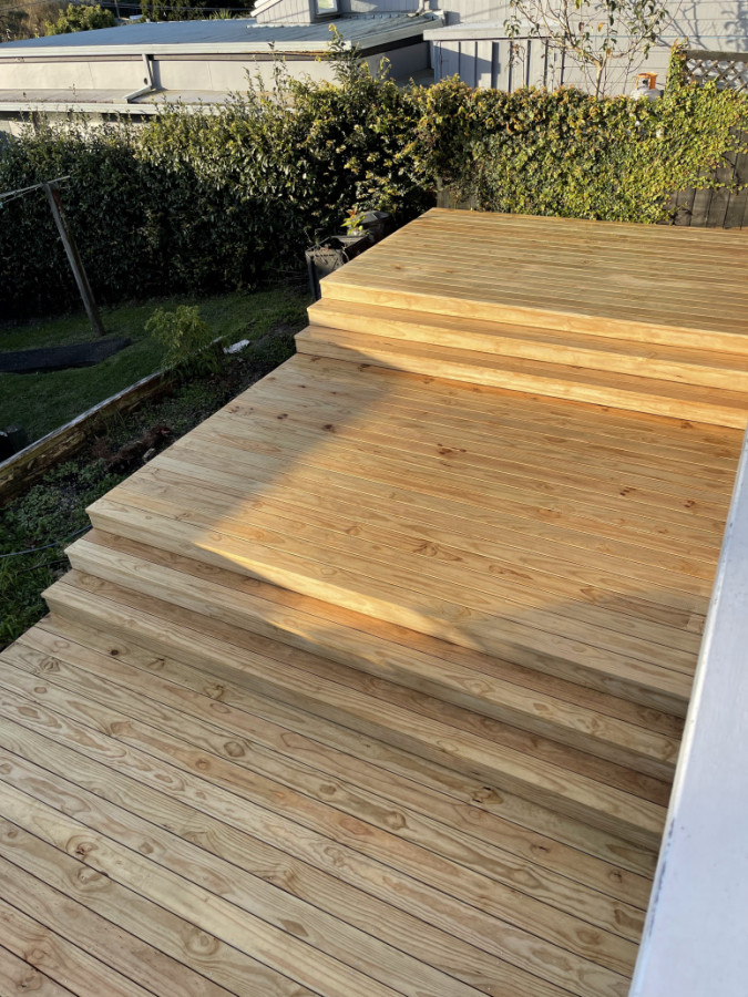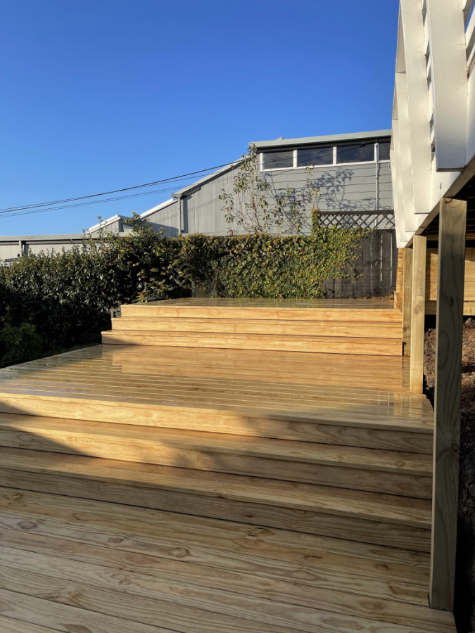 A four tier entrance deck with full width steps