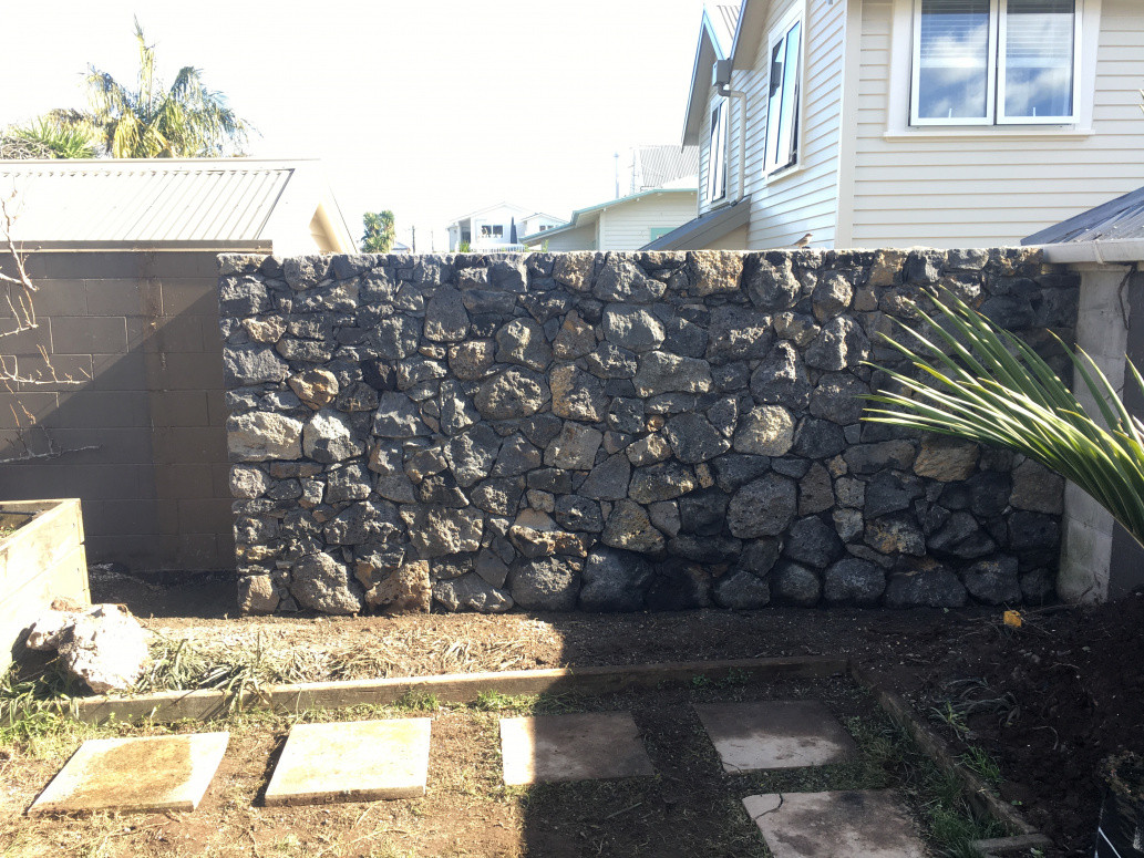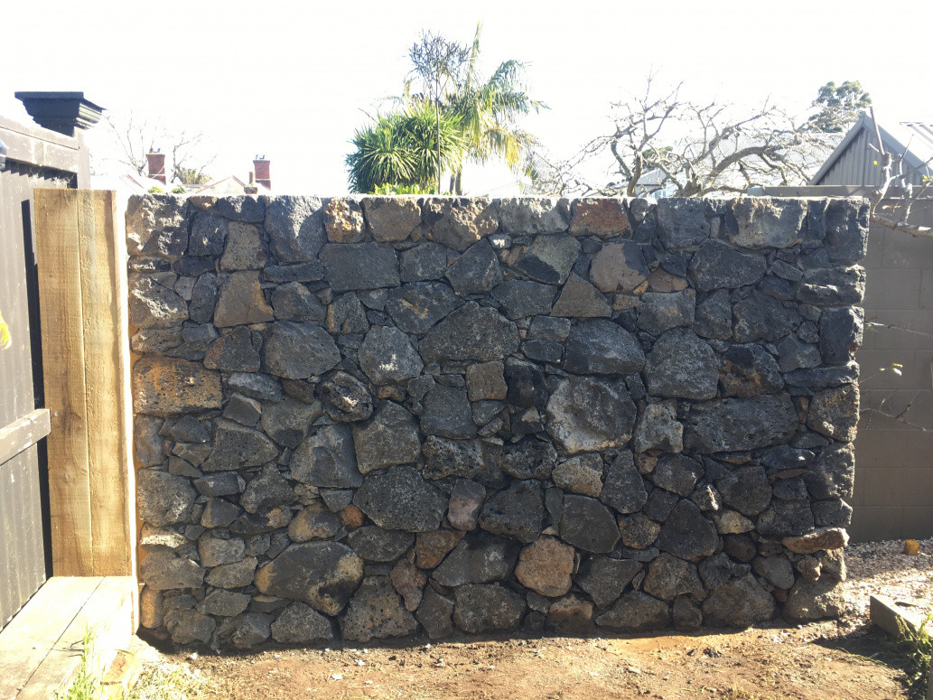 Construction of a new basalt stone wall.