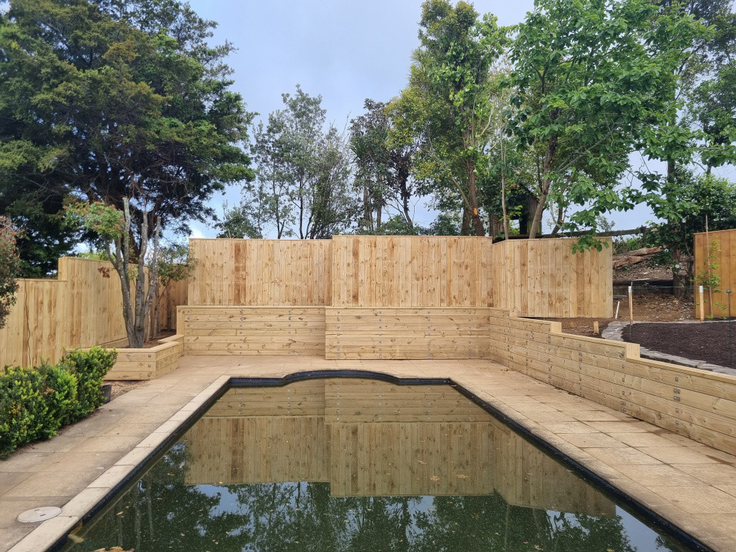 80 Meter Capped Paling Fence 35 Meter Retaining Wall with hidden posts.