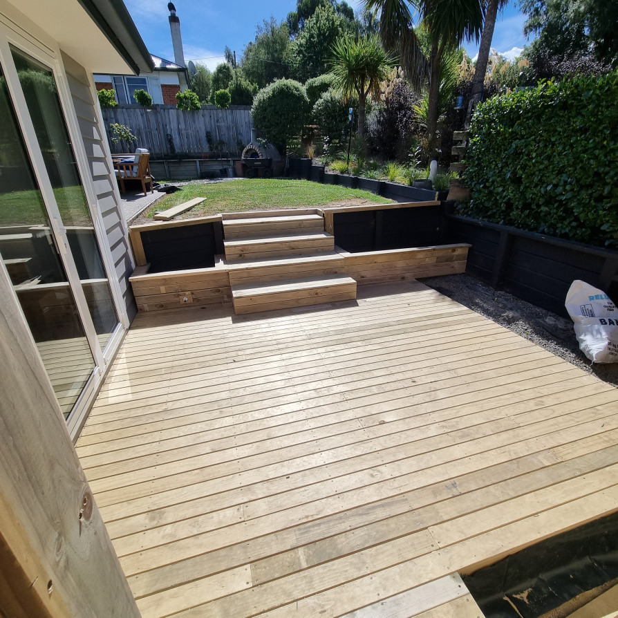 Clients had a drawing from a landscape designer for me to follow for this deck . It turned out looking fantastic