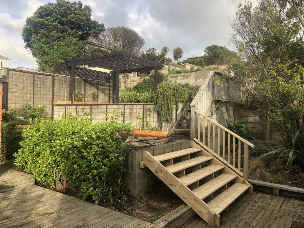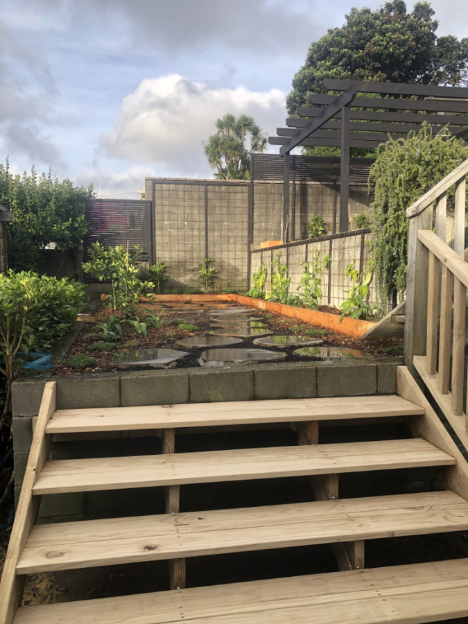 Natural bluestone balanced with lush planting to create a vibrant green space close to the city. Design and build managed by Earthtones Landscapes.