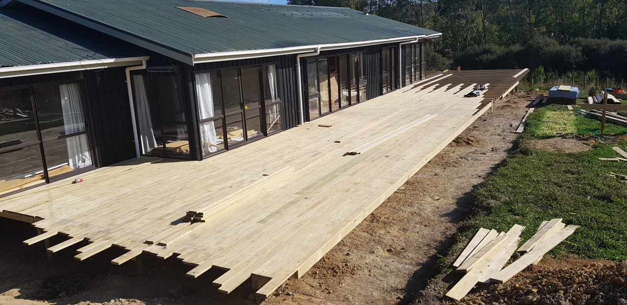 Relocated home up north. Worked on huge pine deck using 140 x 32 pine decking boards