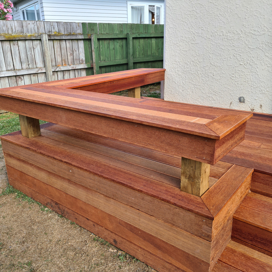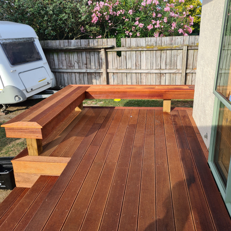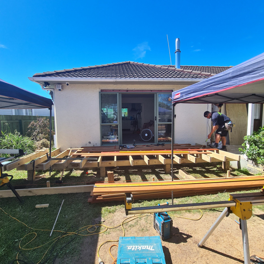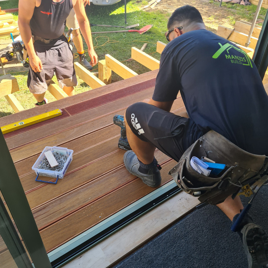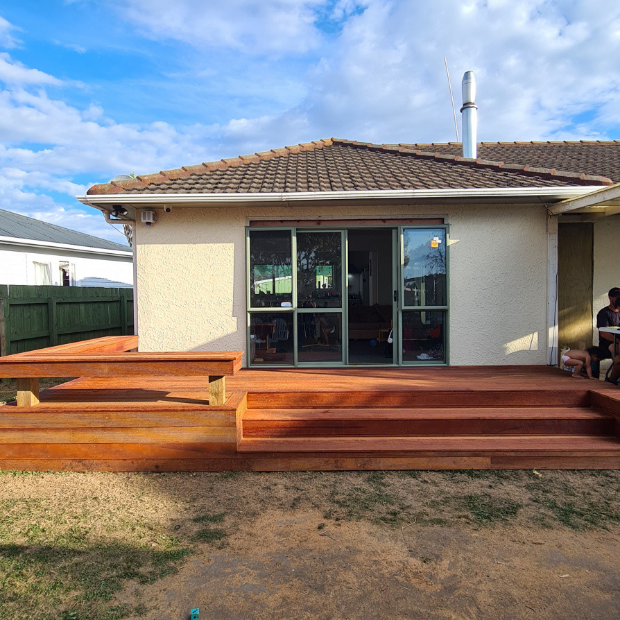 Kwela deck Window removed and secondhand door installed for an opening onto the new deck. Project management, planning, trades and materials provided by Manzis Build.