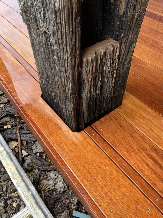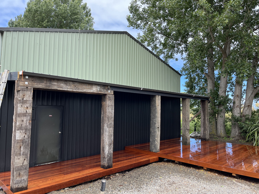 Stunning outdoor space with •400mmx400mm jarah hard wood posts •lean to roof off shed •140mm kwila decking