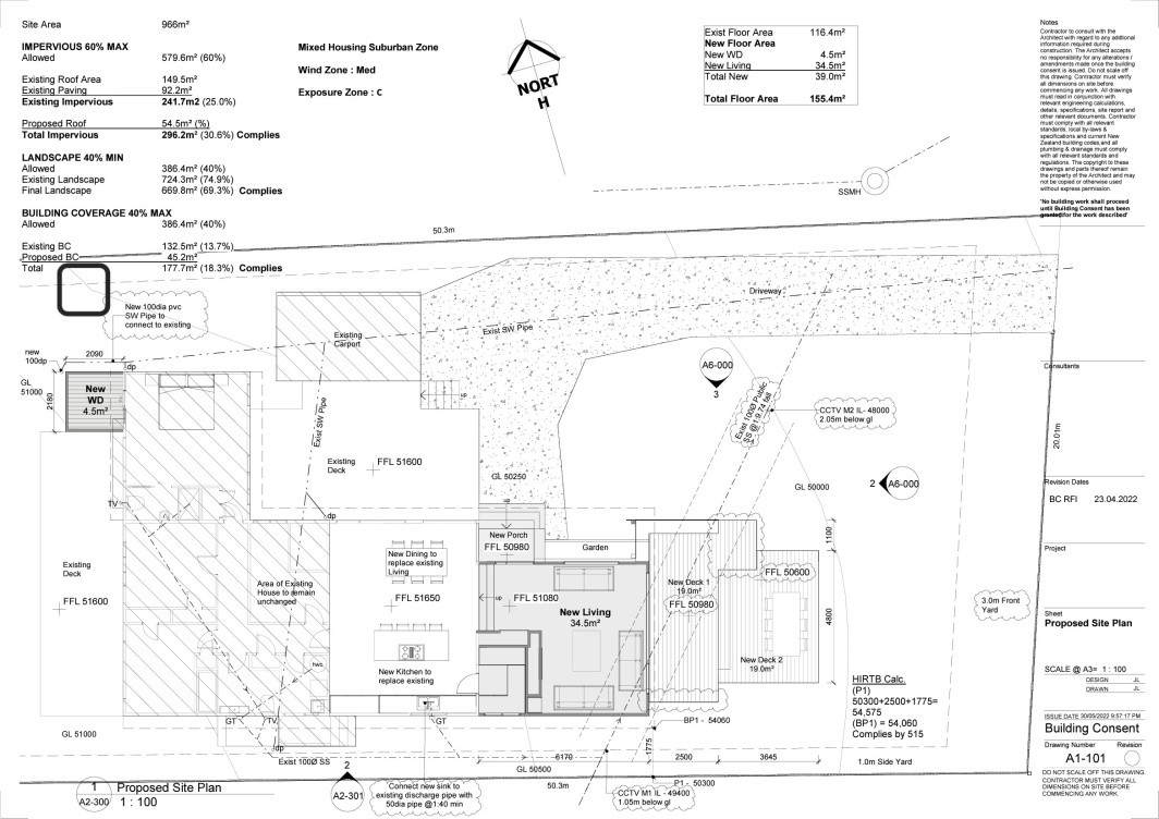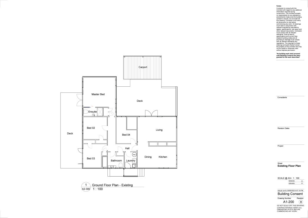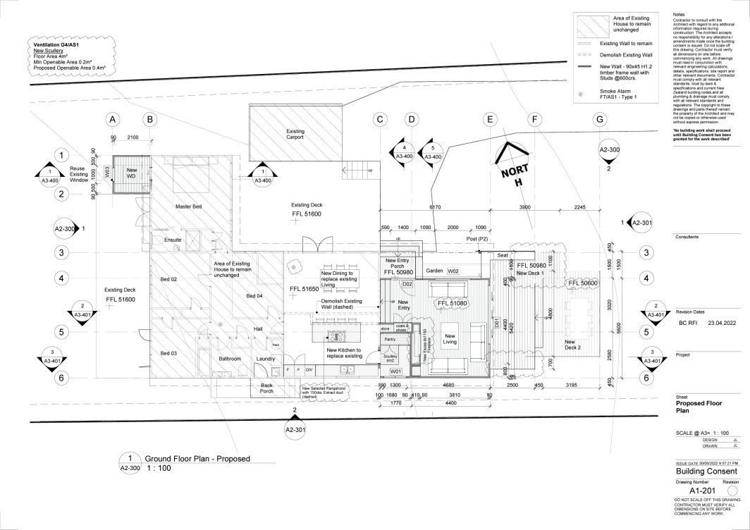 New living room extension with terraced deck to access backyard. New Entrance incorporated in design. New kitchen with existing walls removed to open up space. New walk-in wardrobe to master bedroom.