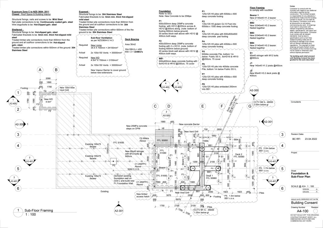 Worked with Structure Engineer to design 'bridging' over existing public drain pipe.