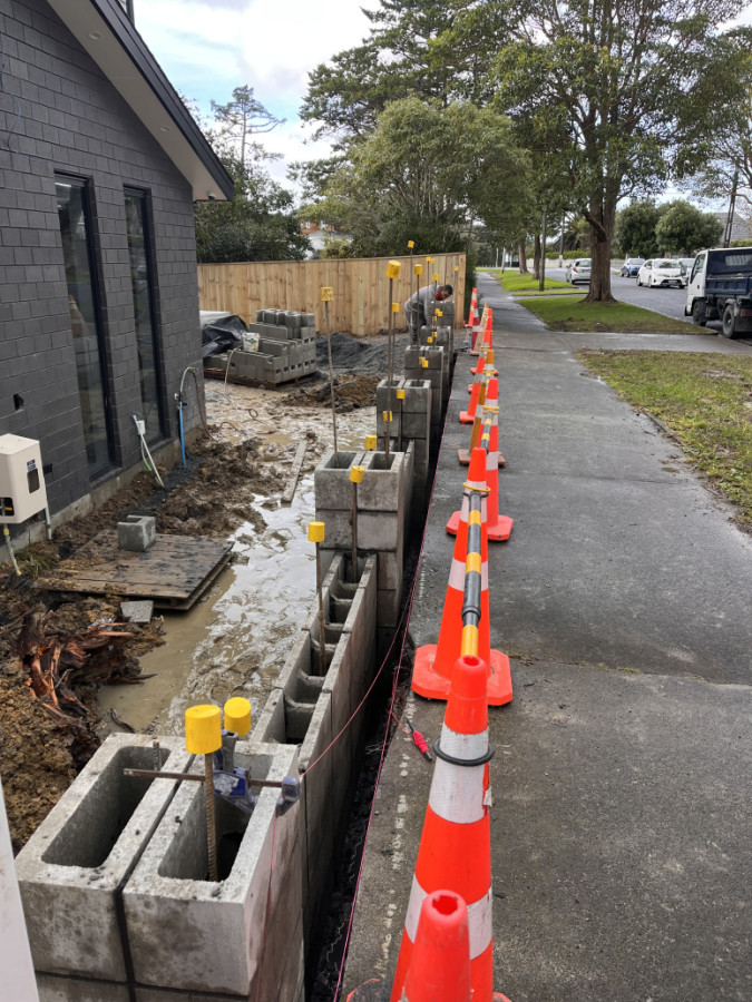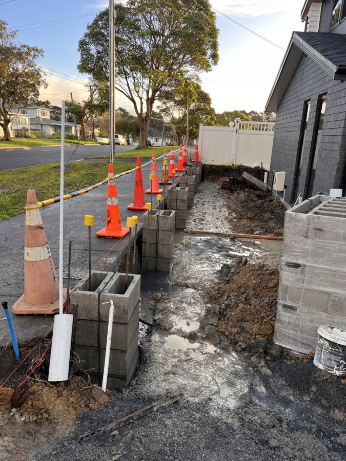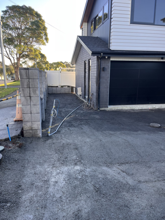 For this project client wanted a block wall with pillars for front boundary and to install a driveway with 15kg of black oxide.