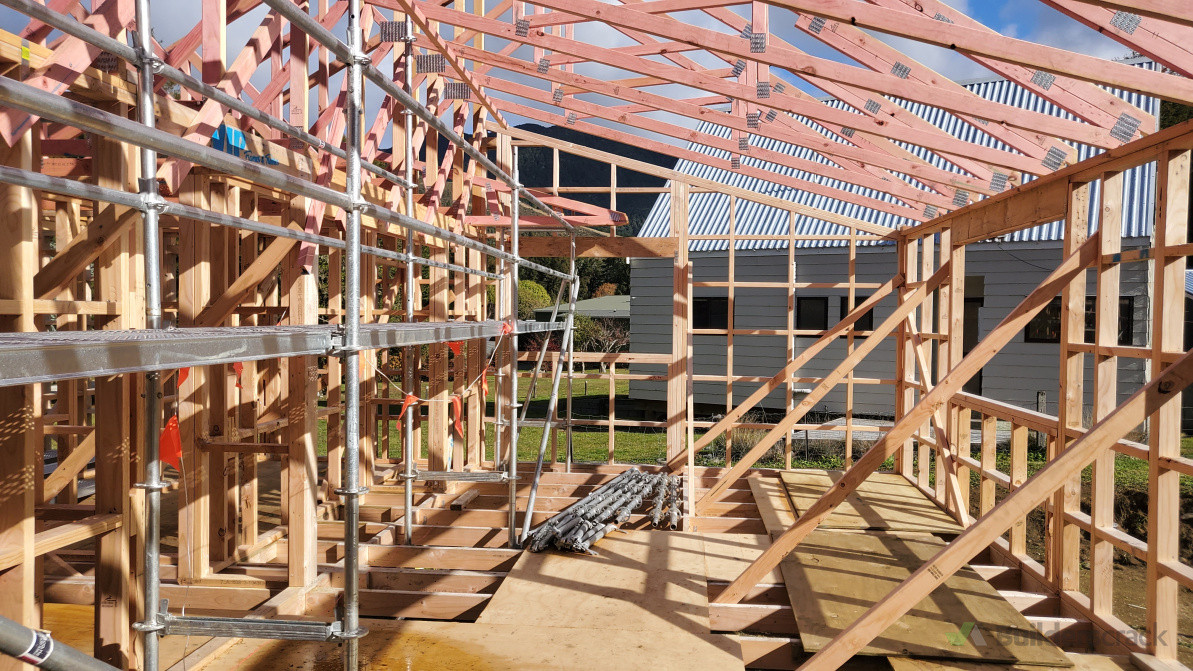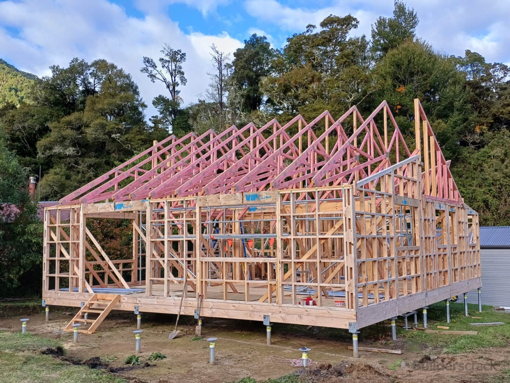 New 2 bedroom house in Lake Rotoroa. Owner Builder Exemption. Screw pile Foundations. Vaulted Trusses.