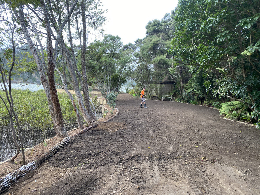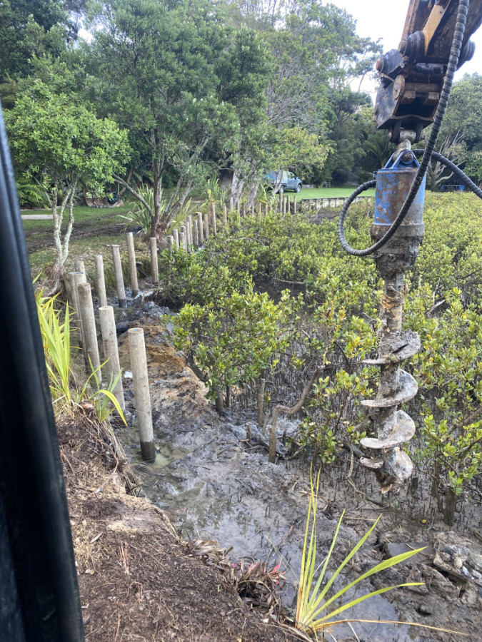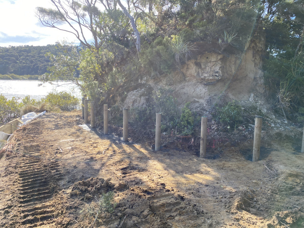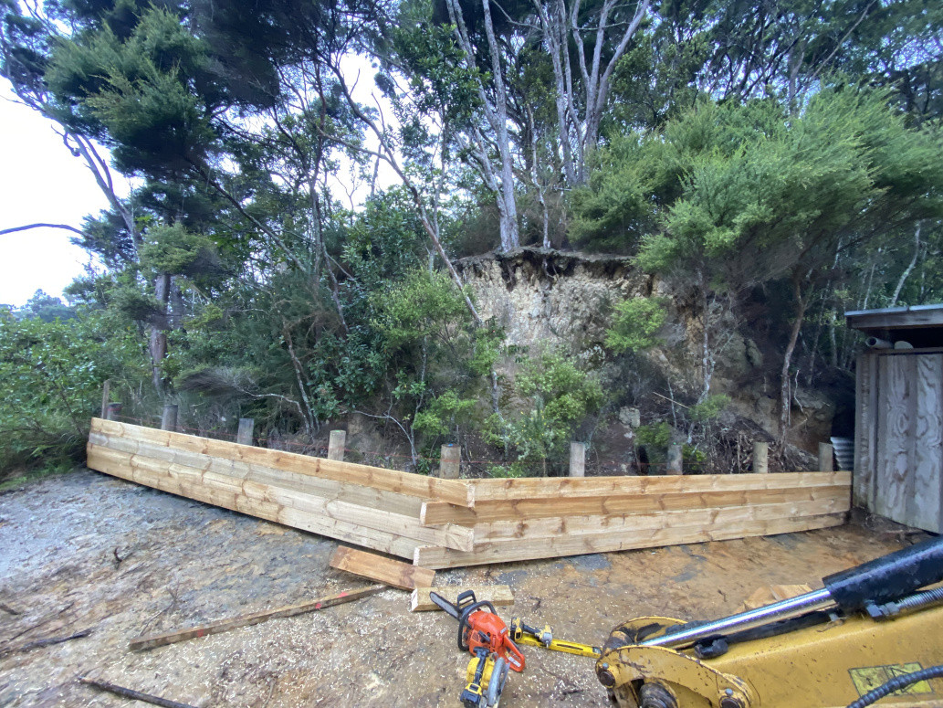 Customer wanted curved retaining walls around their section to reclaim land that had been washed away by the tides and for planting areas.