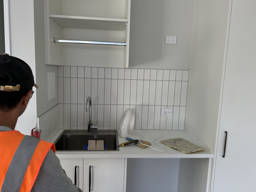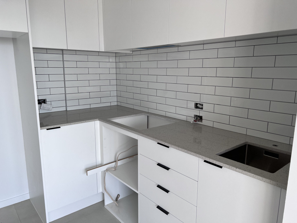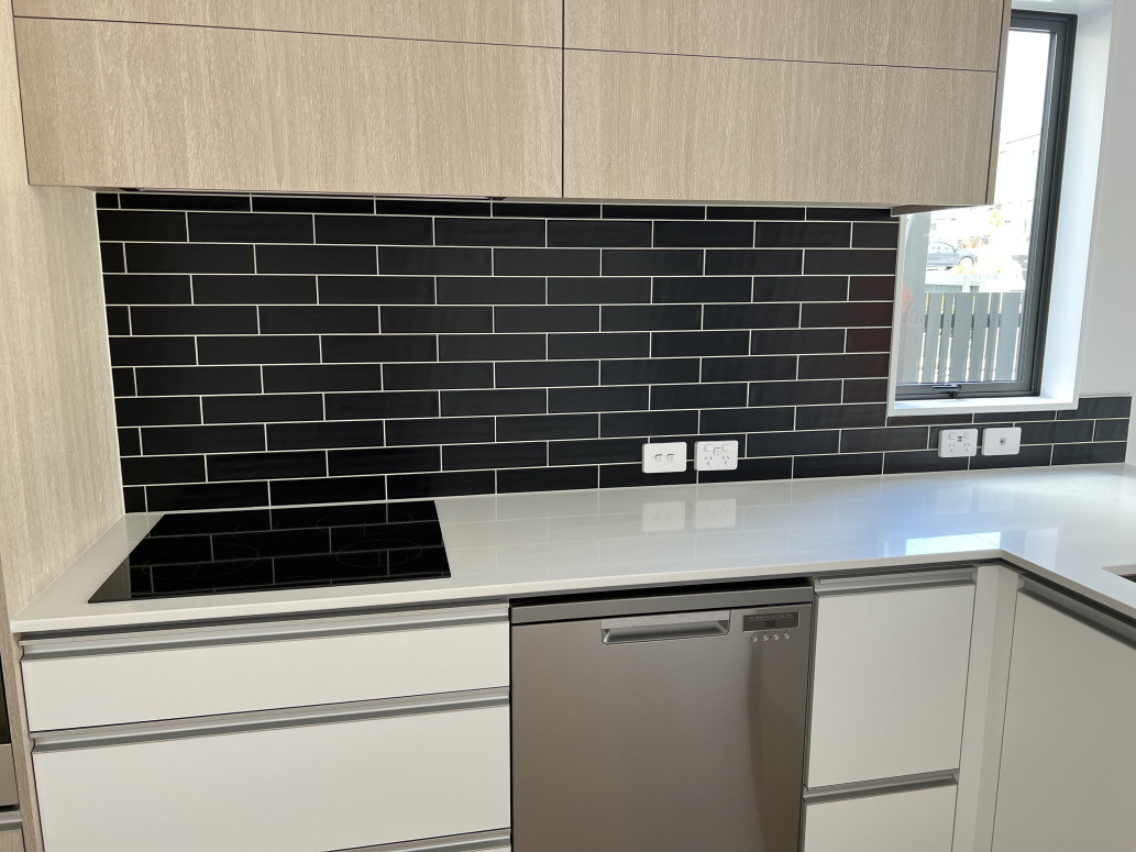Black subway tiles and white Subway tiles @ grouting @ silicone