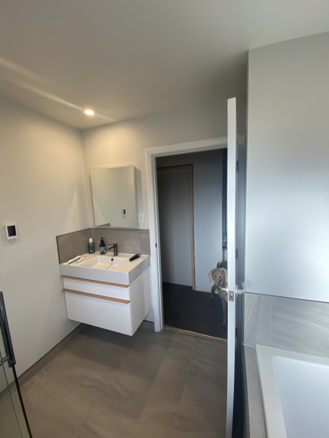 Stripped out smaller existing bathroom for a client and removed a seperate toilet and cupboard to make a new bigger size bathroom