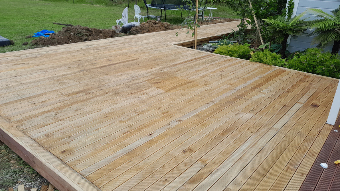 Recent deck for clients at Riverstone Terrace. 17meters long with one section 5m x 6m