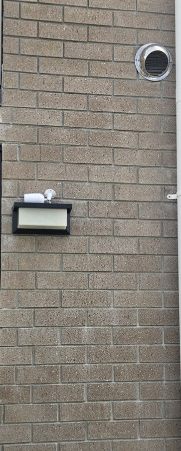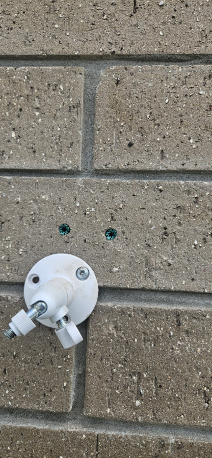 Install of security camera base plate into brick.