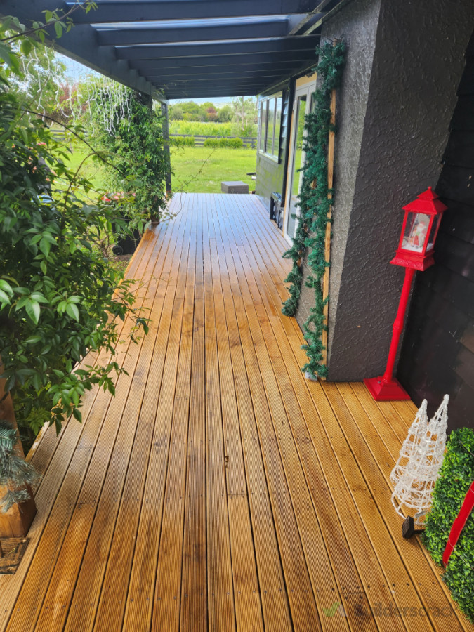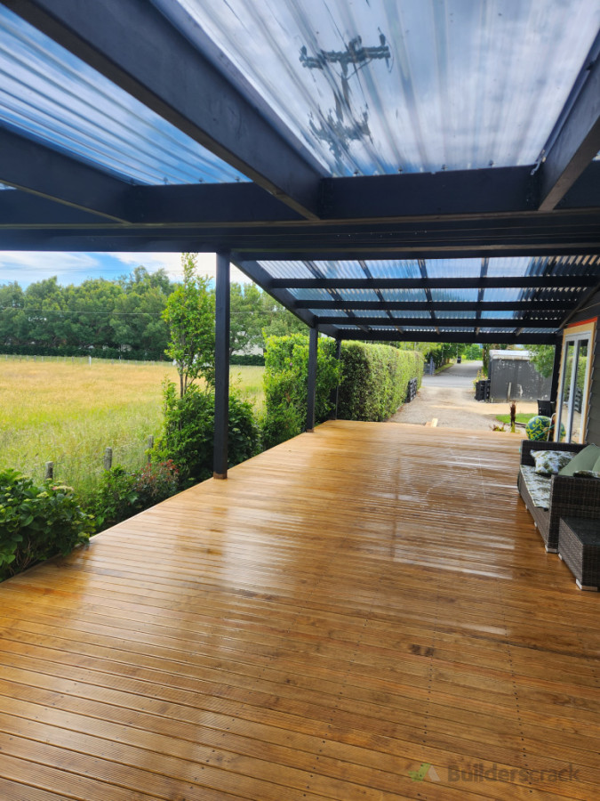 Build a wrap around deck and cover in so clients can enjoy indoor outdoor flow. As well as installing mutable doors to access the deck from bedroom and dinning room