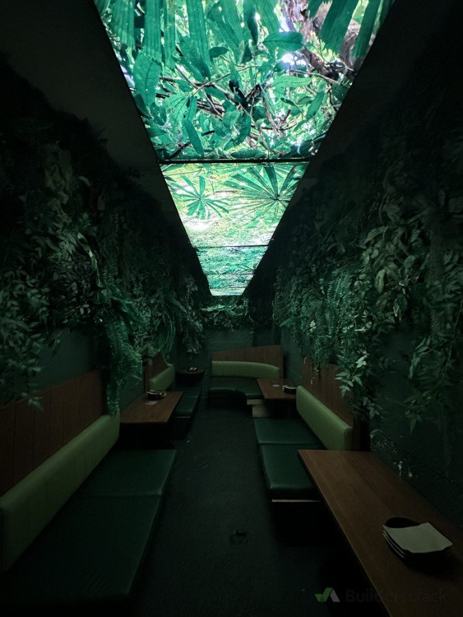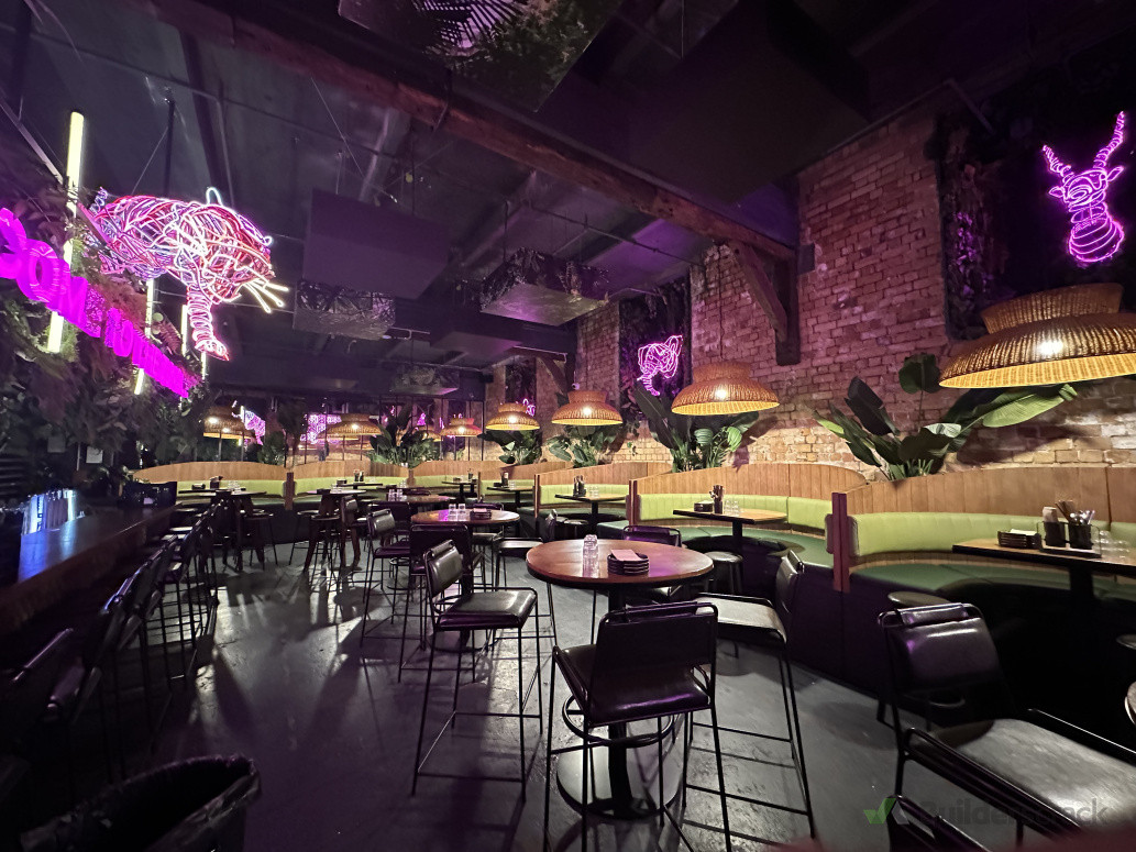 Commercial Fitout of Jungle 8 Bar. Taking inspiration from the energy and vibrancy of Vietnam’s Ho Chi Minh City, Lucky 8’s Vietnamese sister bar comprises cosy booths that encircle the space while high tables take centre stage amidst the vibrant atmosphere.