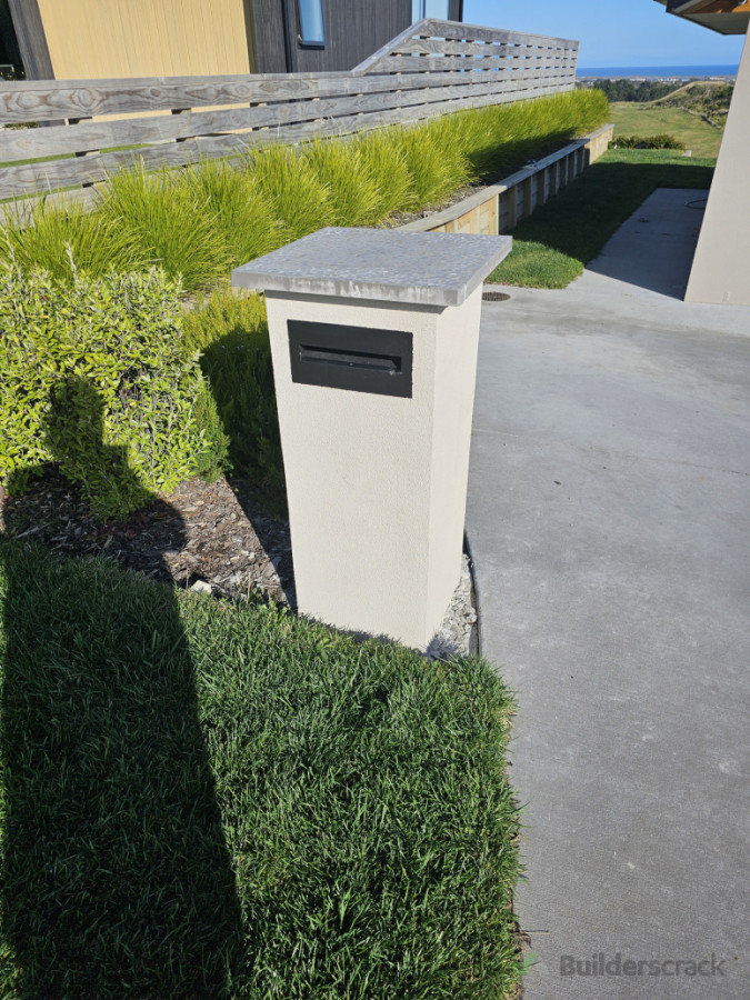 Blockwork plastered with honed paver cap to match house